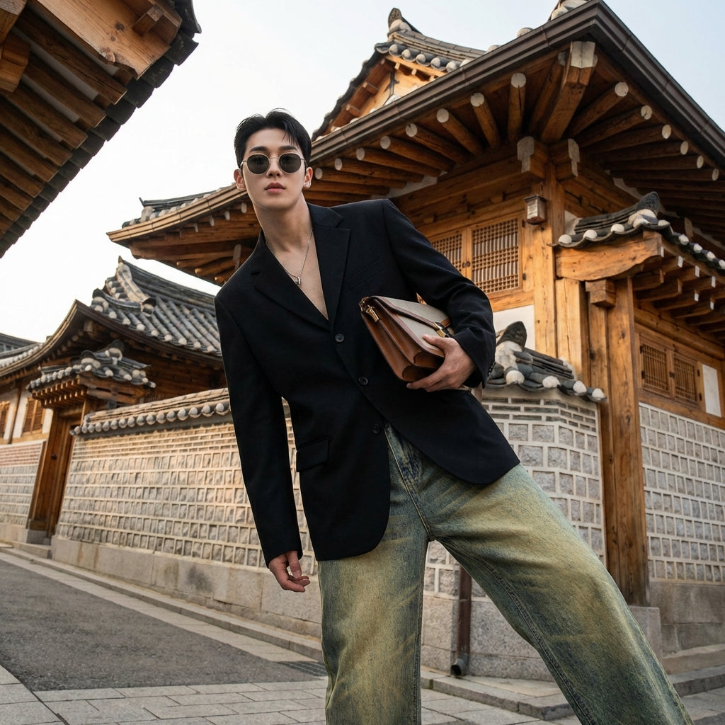 - النمط: ملابس الشارع، عتيق، عصري. مستوحى من تيارات الموضة الكورية، يجسد هذا الجينز روحًا مريحة وأنيقة، مثاليًا لجميع المناسبات.