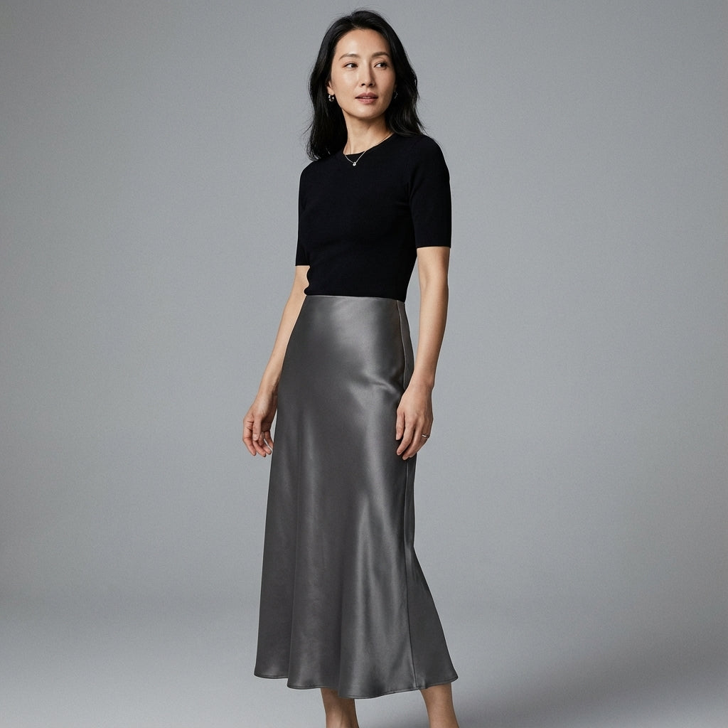 اعتمدي هذه التنورة الميدي لإطلالة كورية خالدة وأنيقة، مثالية للتعبير عن شخصيتك ببراعة وعصرية.