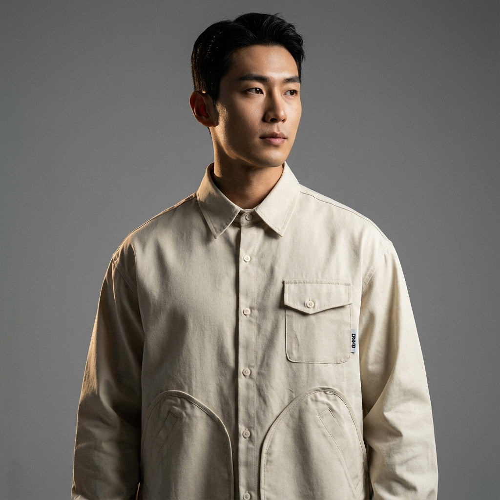 هذا القميص متعدد الجيوب ضروري للرجال الذين يبحثون عن قطعة ملابس عملية وعصرية في نفس الوقت، مستوحاة من أحدث صيحات الموضة الكورية.