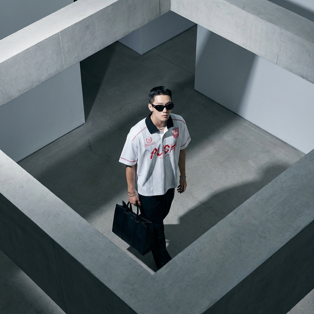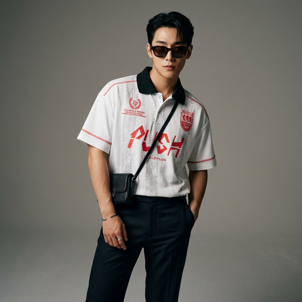 - النمط: ياباني قديم، ستريت وير، موضة كورية. يجسد هذا البولو جمالية غير رسمية مع إلهام قديم وحديث، وهو شائع جدًا في الموضة الكورية.