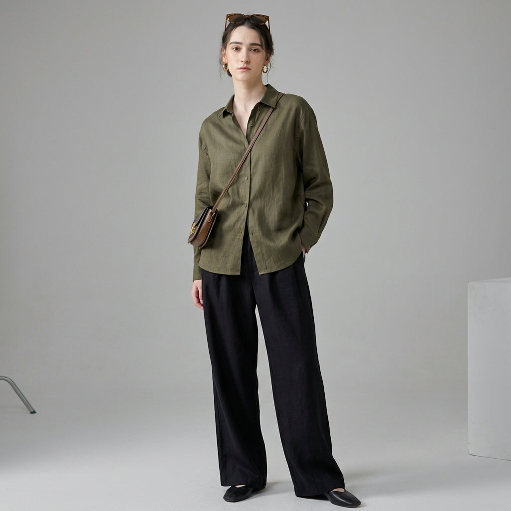 اعتمدي إطلالة عصرية وأنيقة مع قميصنا الواسع المصنوع من الكتان والتينسل. تصميمه البسيط بزر واحد وياقته البولو يجعله قطعة أساسية لإطلالة مريحة وأنيقة في آن واحد، مثالي لجميع المناسبات! 🌿