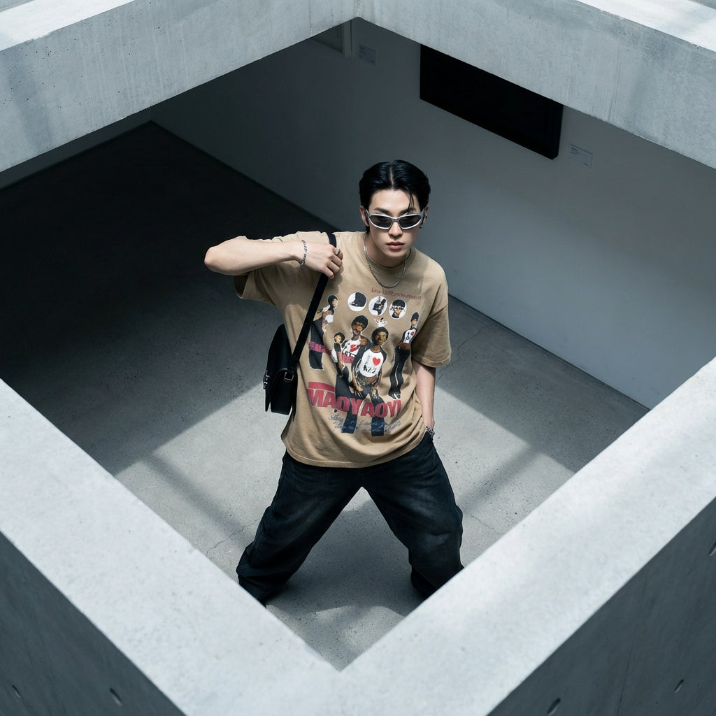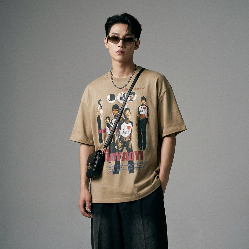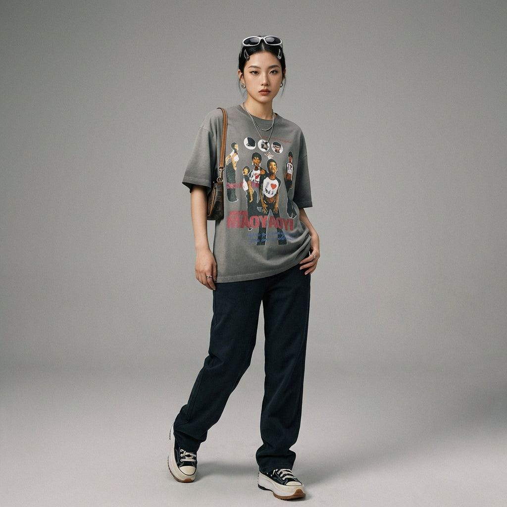 - النمط: ملابس الشارع (Streetwear)، أزياء كورية (K-fashion)، كاجوال. يجسد هذا التيشيرت روح الموضة الحضرية الكورية بلمسة عصرية ومريحة.