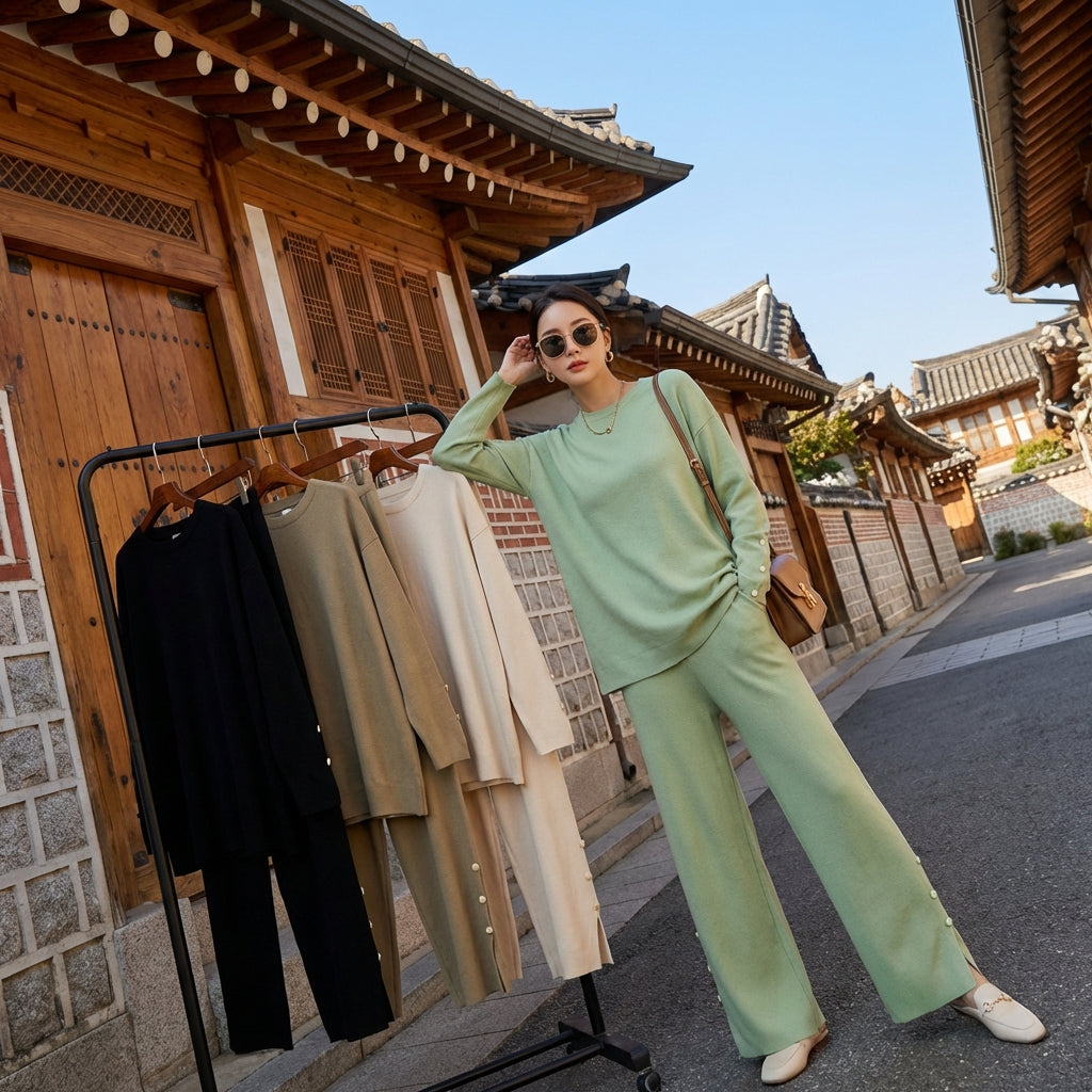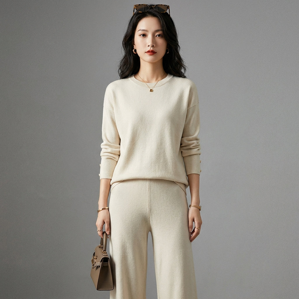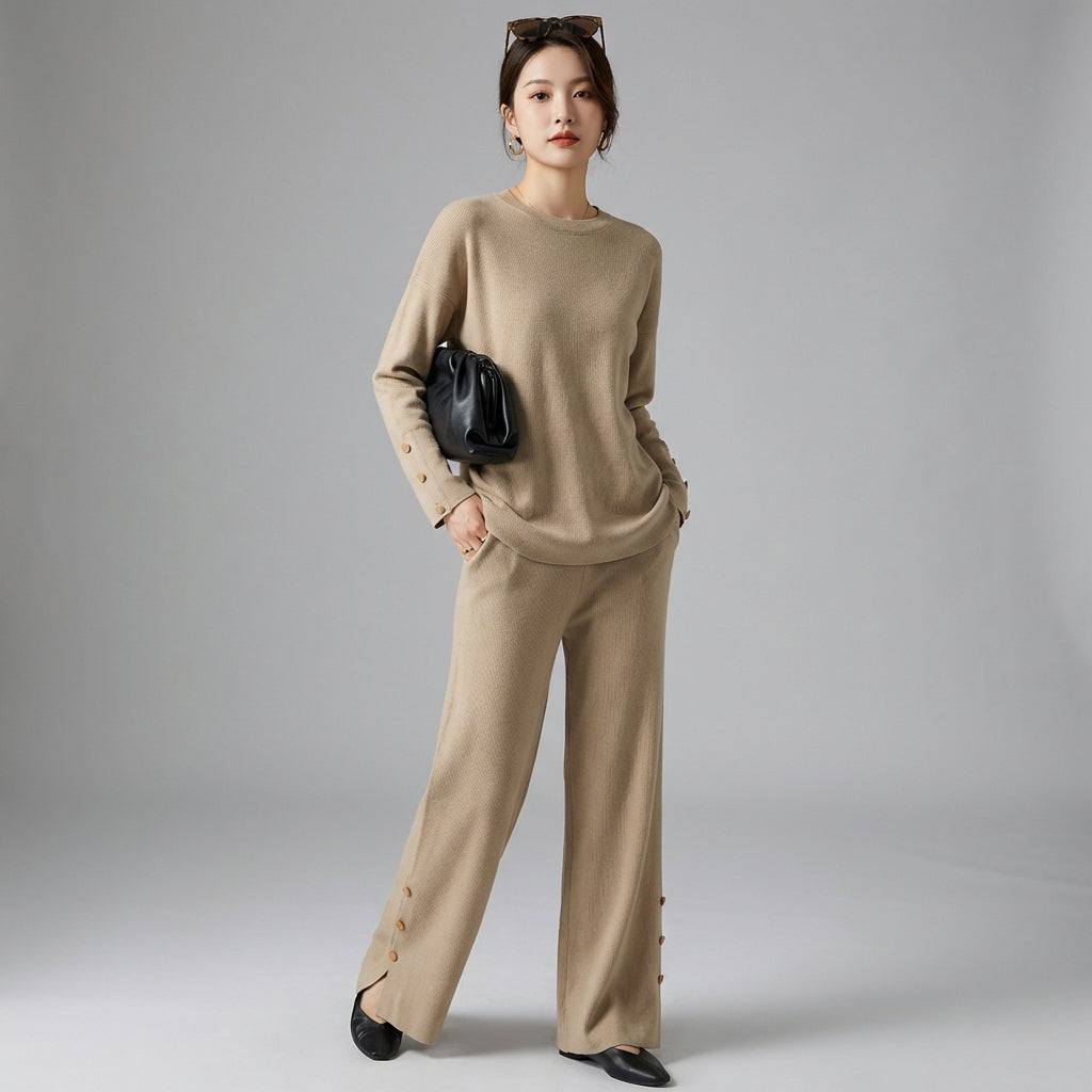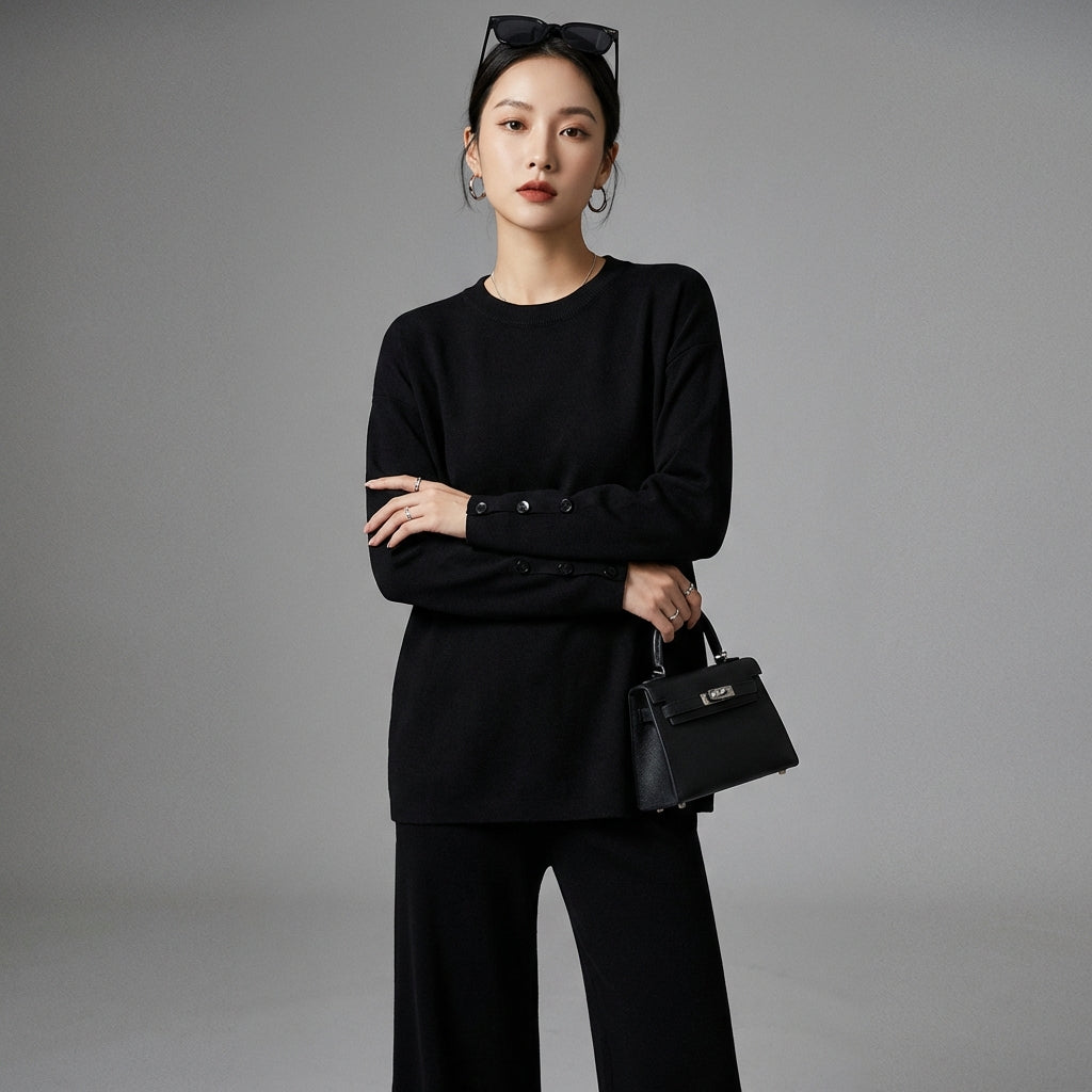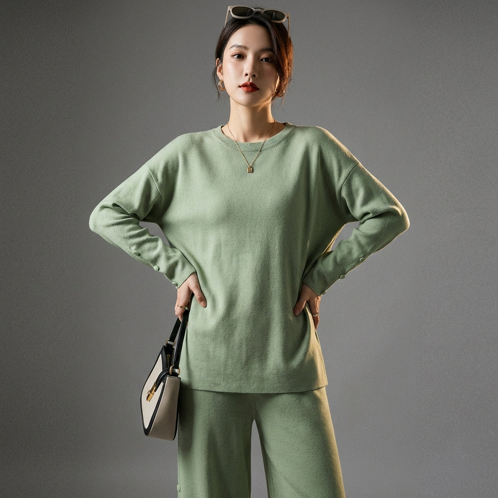- النمط: بسيط، أنيق، كاجوال. يجسد هذا الطقم البساطة الراقية، سهل الاندماج في خزانة ملابس عصرية لإطلالة أنيقة ومريحة.