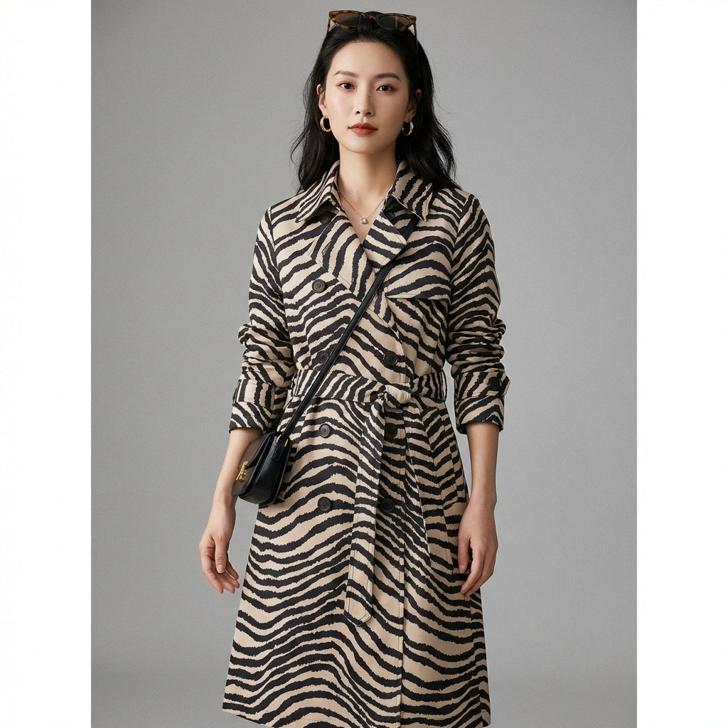 اعتمدي إطلالة خالدة مع معطف الترنش المخطط، مثالي لرفع مستوى أناقتك. يتميز بياقة كلاسيكية مطوية وحزام أنيق، يتكيف تمامًا مع قوامك لإطلالة أنيقة وراقية! 🍂