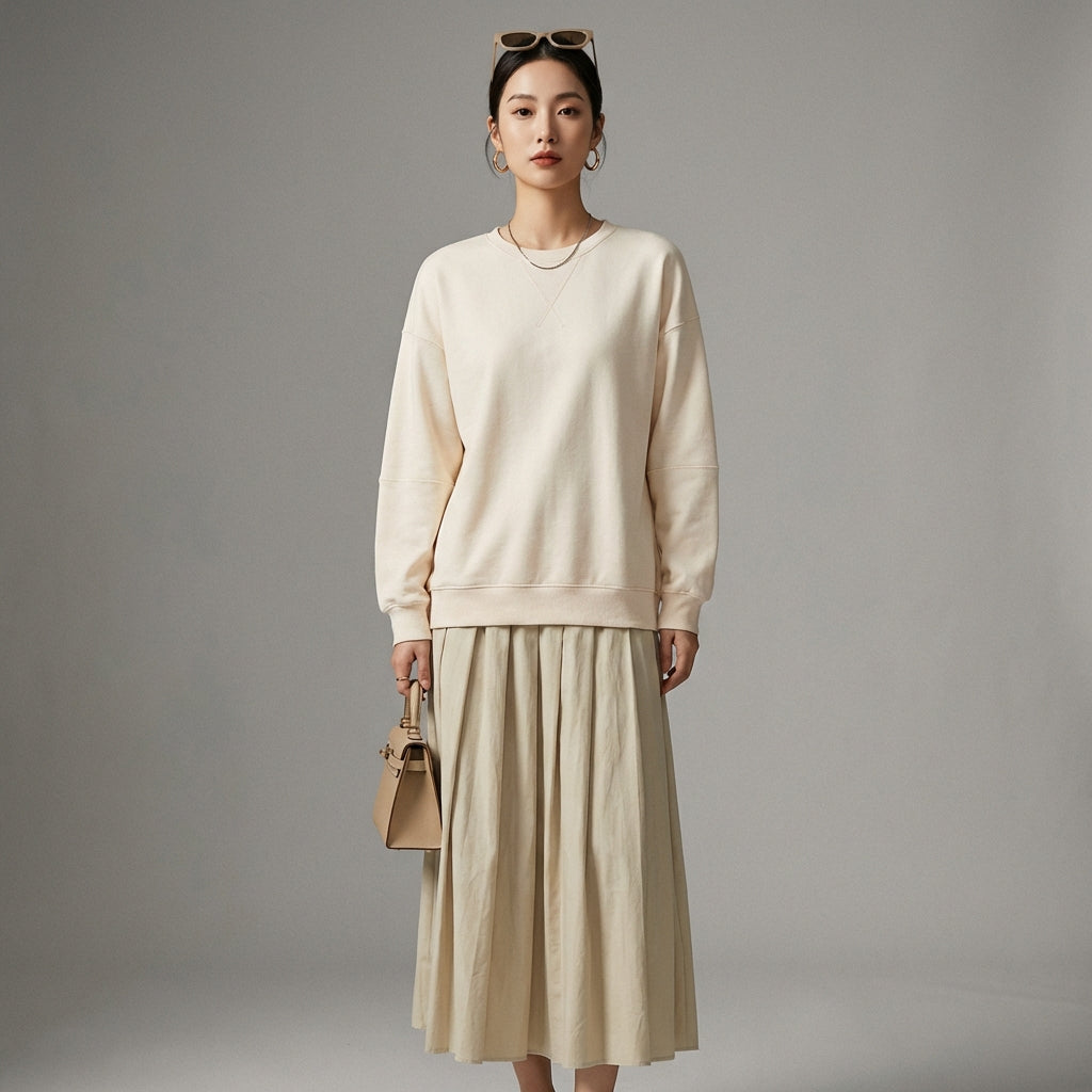 - النمط: بسيط، حضري، عصري. يجسد هذا الفستان الأناقة البسيطة للأزياء الكورية، مثالي لإطلالة كاجوال أو أكثر رسمية.
