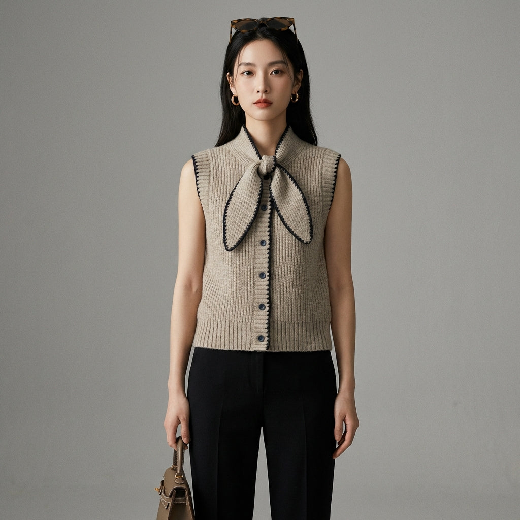 تبنّي إطلالة أنيقة وراقية مع صديريتنا ذات الأزرار الفردية، المزدانة بعقدة رقيقة وحواف متباينة. يجعله ياقته العالية وقصته المثالية قطعة أساسية لأي خزانة ملابس متطورة! ✨