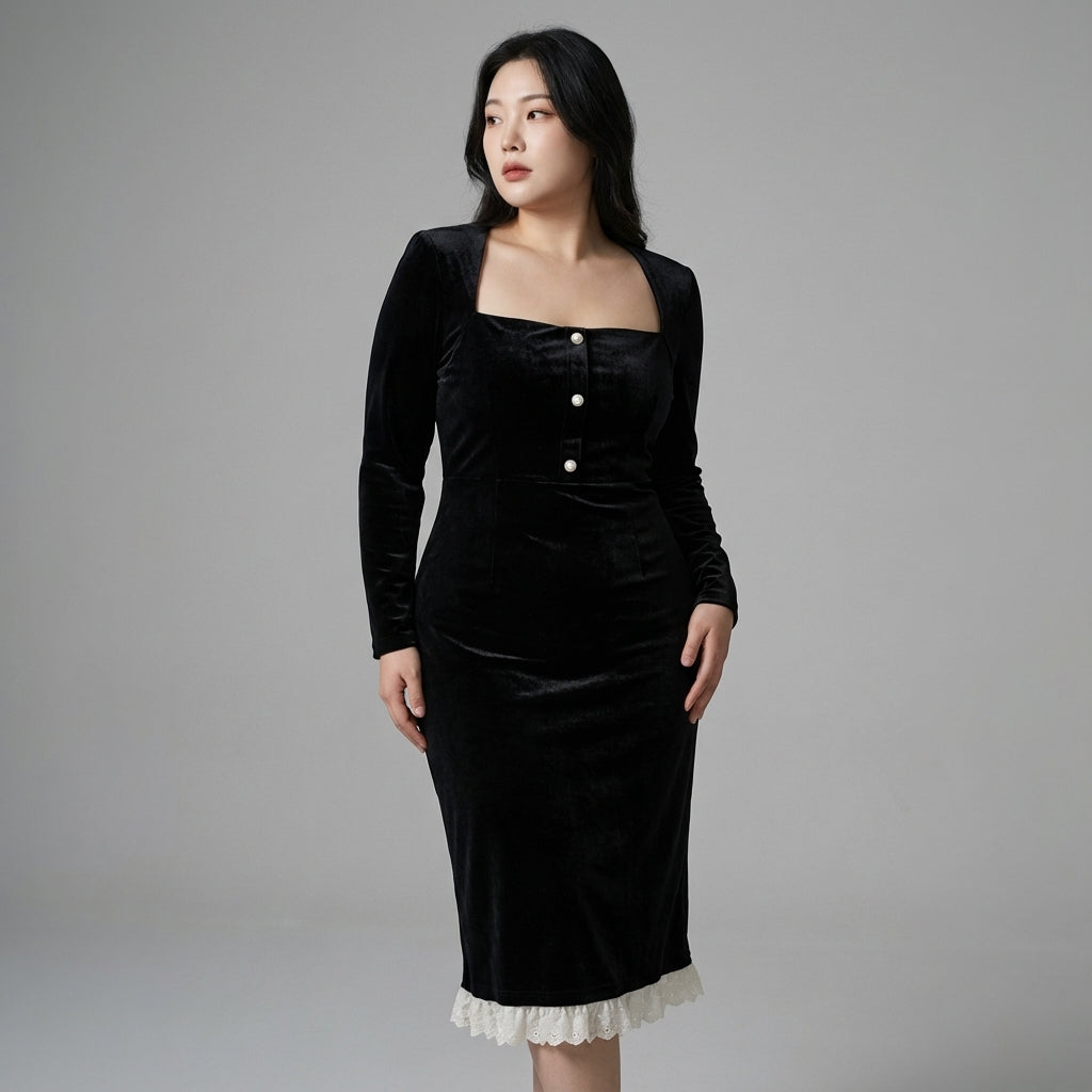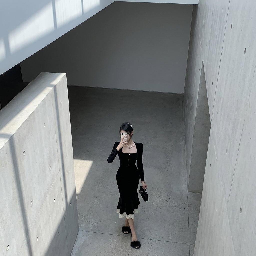 Choisissez cette robe en velours noir pour une touche d'élégance intemporelle et un style coréen inimitable qui fera sensation.