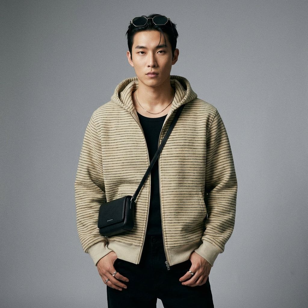 Adoptez un look décontracté et moderne avec notre cardigan rayé à capuche, parfait pour toutes les occasions. Son design minimaliste et sa coupe ample vous assurent un confort optimal et un style affirmé ! ✨