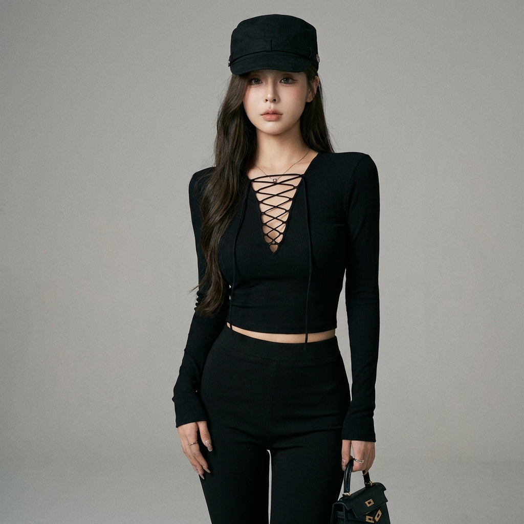 Affirmez votre style avec notre crop top noir, doté d'un décolleté en V flatteur et de manches longues pour une allure moderne et élégante. Sa coupe ajustée sublime la silhouette, parfait pour un look audacieux et tendance ! 🖤