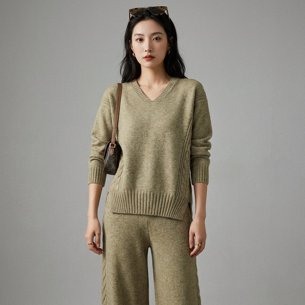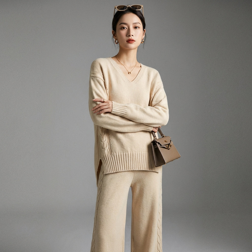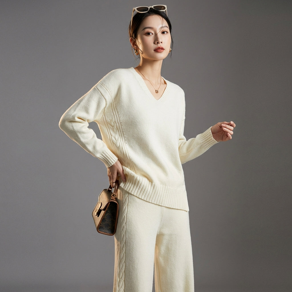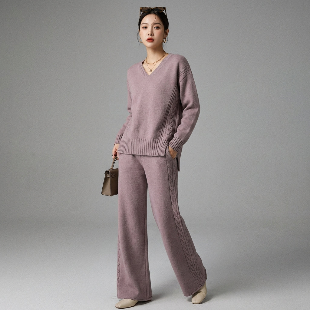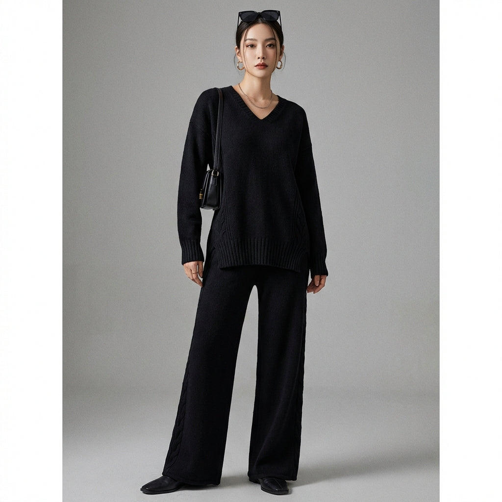 Adoptez un look tendance et confortable avec notre ensemble pull et pantalon large tricoté. Ce duo élégant, parfait pour toutes les occasions, allie douceur et style décontracté pour une silhouette moderne et chic ! ✨