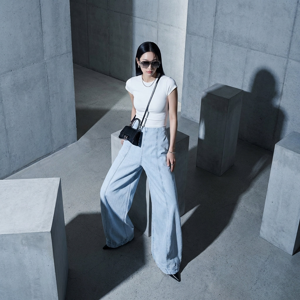 Adoptez un look décontracté et tendance avec notre pantalon en denim à taille haute et coupe ample. Parfait pour une allure moderne et confortable au quotidien ! 👖