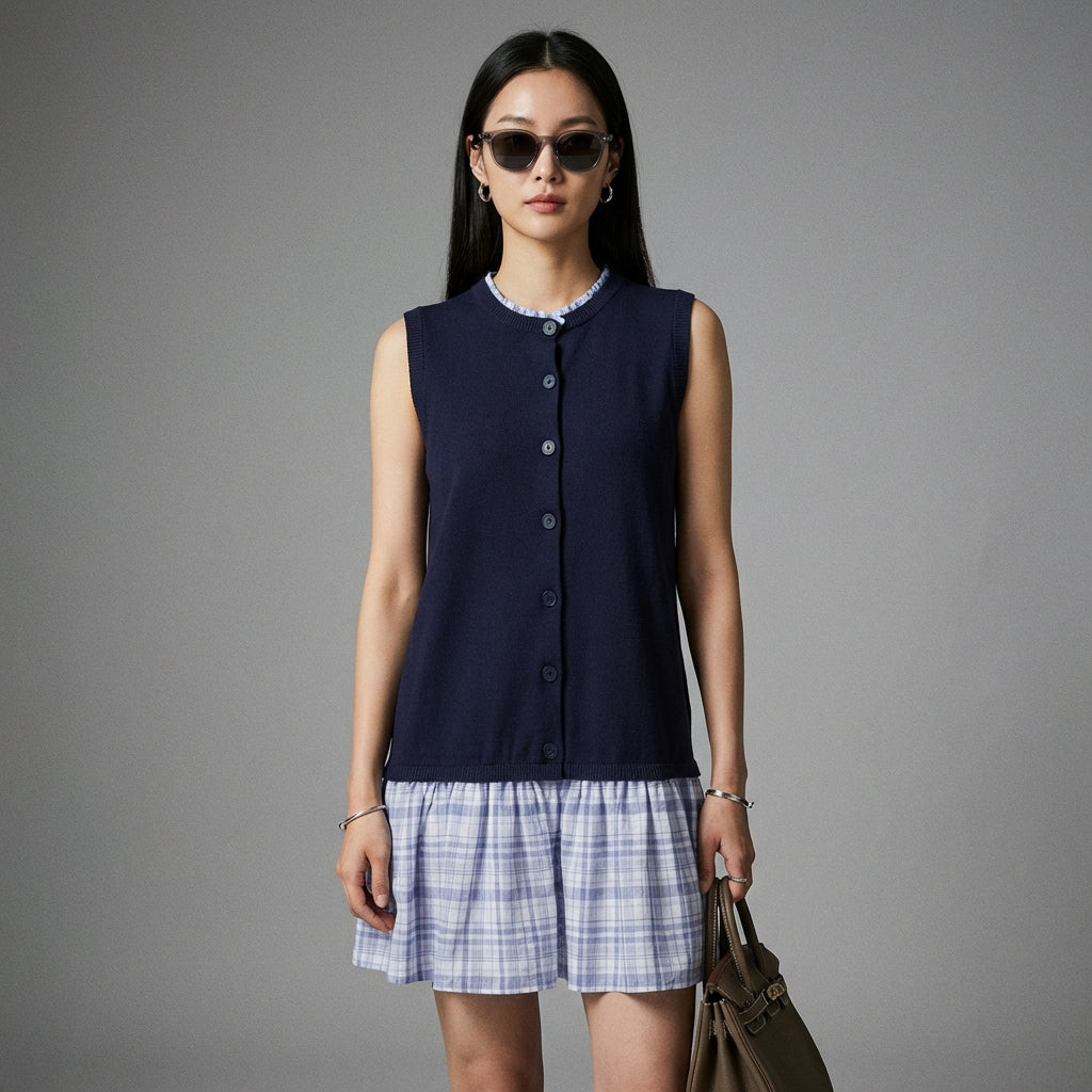 Adoptez une allure sophistiquée et tendance avec cette robe midi en maille, alliant élégance et modernité. Son col volanté et sa jupe plissée à carreaux ajoutent une touche unique et raffinée à votre garde-robe ! 💙