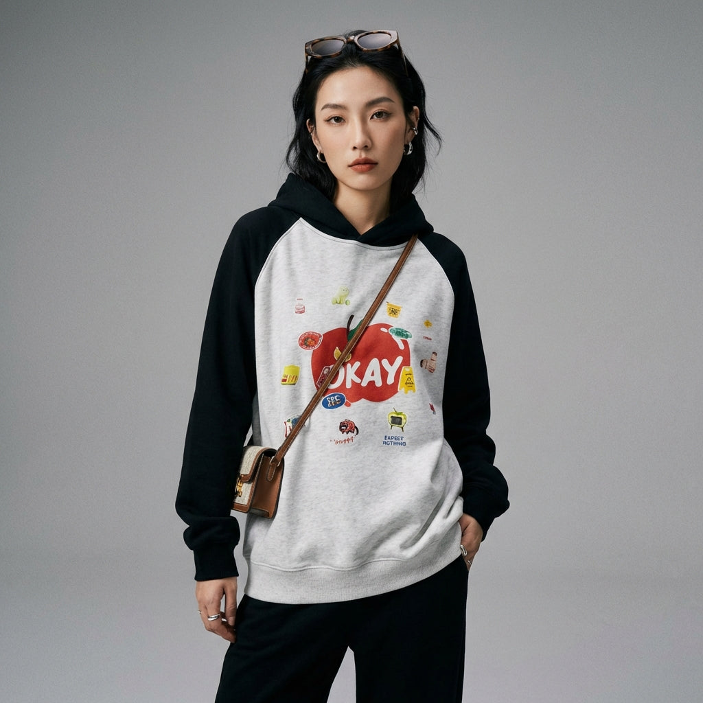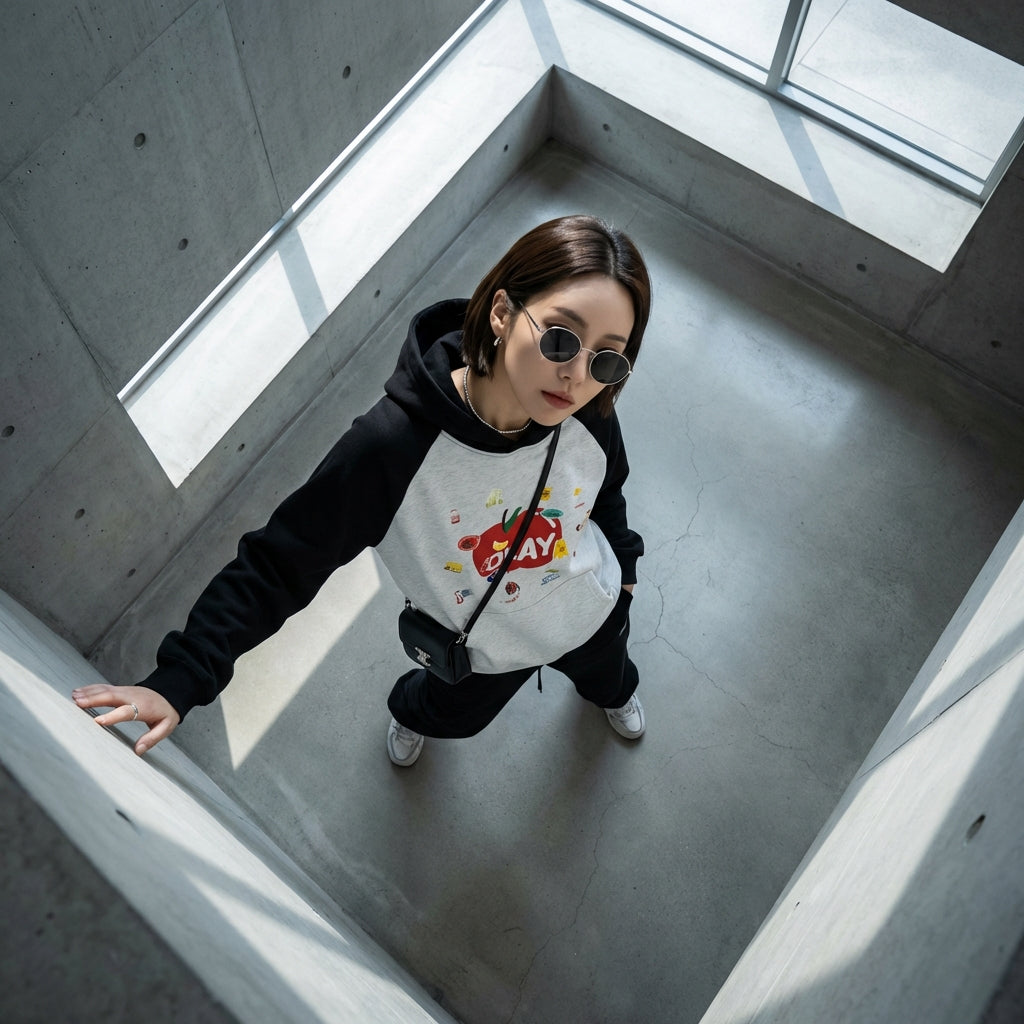 - Style : Streetwear, K-fashion, Décontracté. Ce sweat incarne l'esprit jeune et tendance de la mode urbaine coréenne, avec une touche ludique.