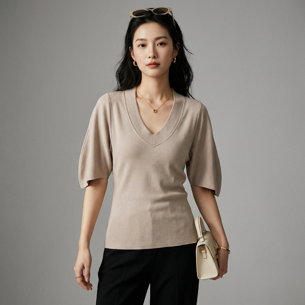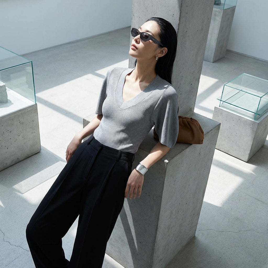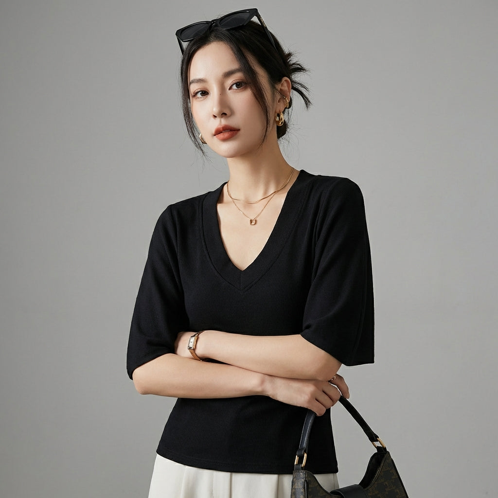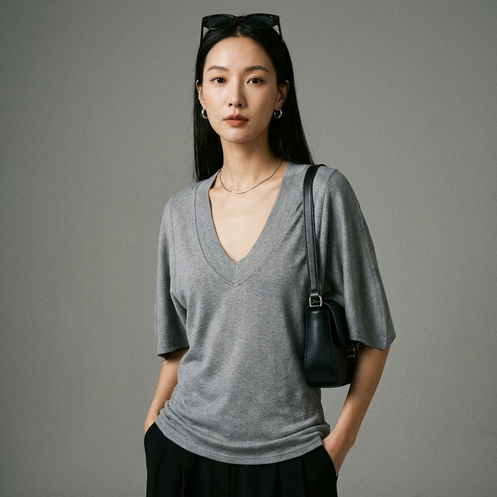 - Style : Minimaliste, Urbain, K-fashion. Ce t-shirt incarne l'élégance simple et moderne de la mode coréenne, parfait pour un style quotidien raffiné.