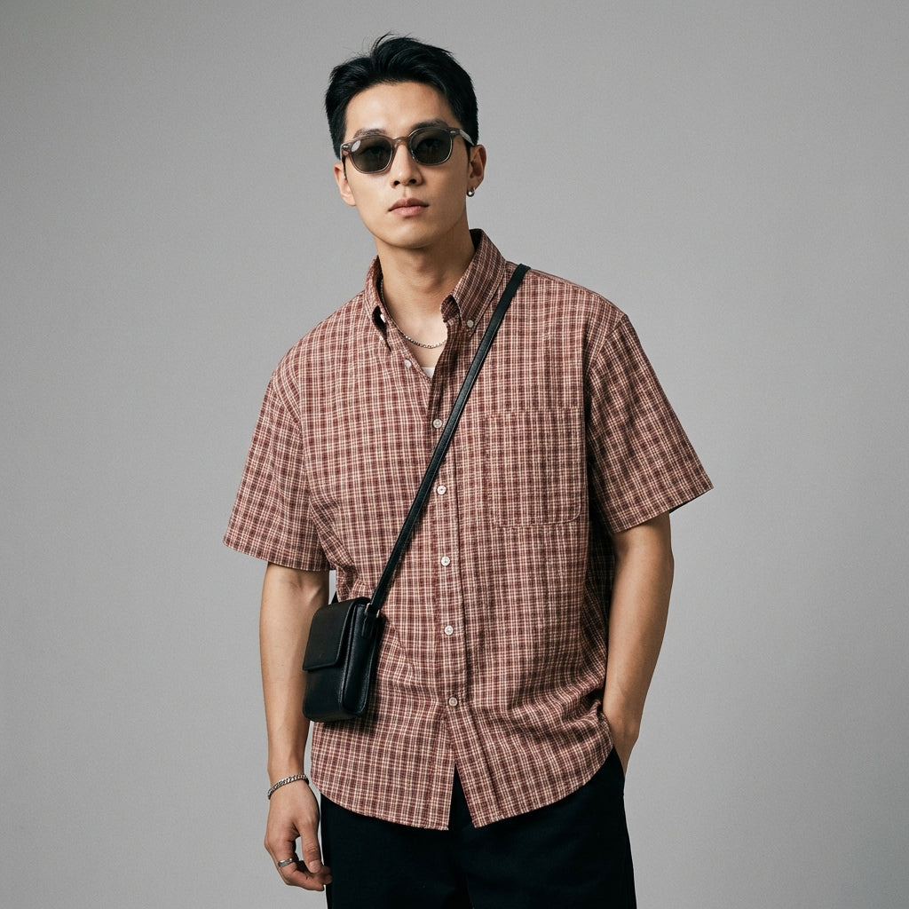 Adoptez un look décontracté et tendance avec notre chemise à carreaux à manches courtes. Son design classique avec un col rabattu et une coupe ample vous assure confort et style pour toutes vos occasions. Parfaite pour une touche de mode urbaine au quotidien ! ✨