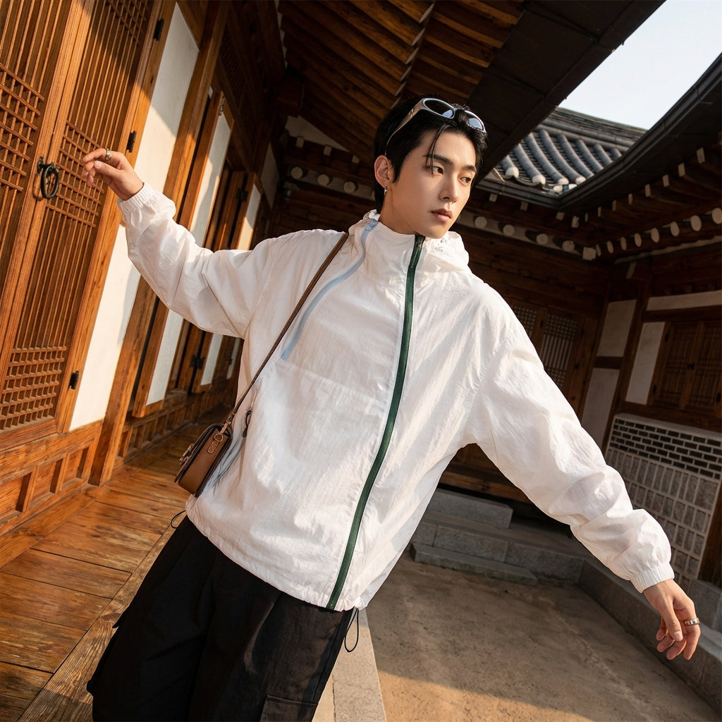 Získejte trendy a ležérní vzhled s naší lehkou bundou s kapucí, asymetrickým zipem a velkými kapsami. Ideální pro stylovou ochranu před sluncem nebo pro doplnění vašeho městského outfitu! ☀️