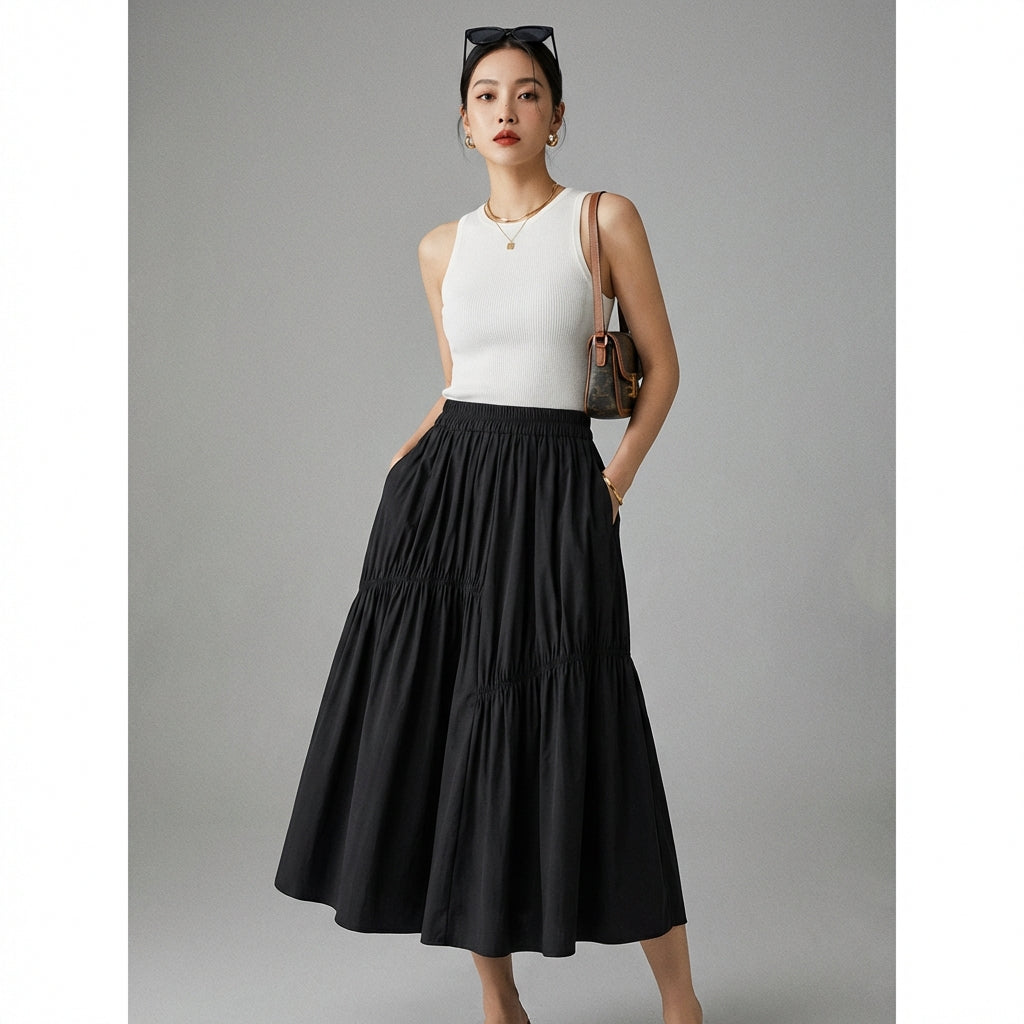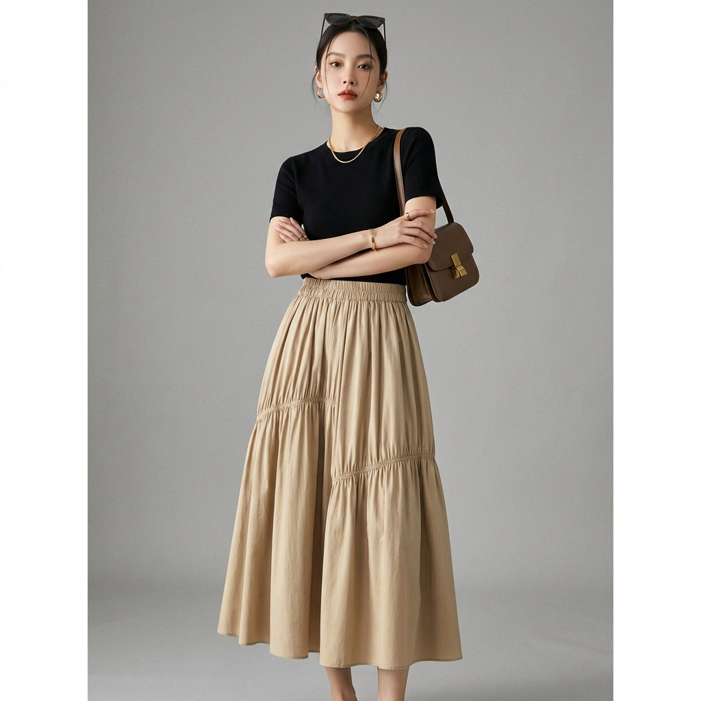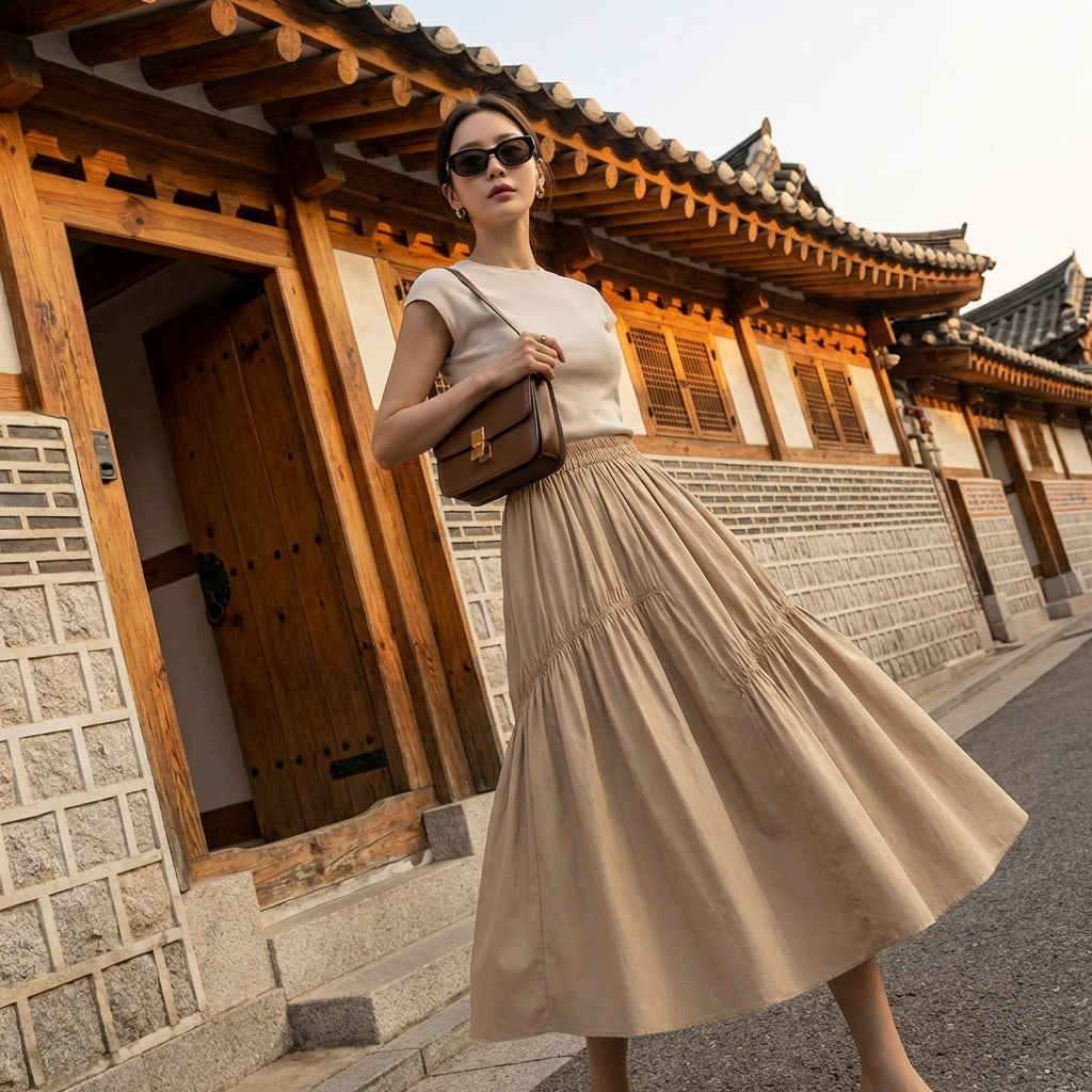- Styl: Korejská móda, Elegantní, Minimalistický. Tato sukně ztělesňuje diskrétní sofistikovanost a čisté linie k-módy, ideální pro všestranný styl.