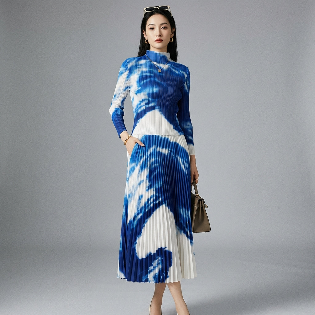 - Typ: Dvoudílný komplet, Úzký top, Plisovaná sukně. Harmonická kombinace, která sofistikovaně zvýrazňuje siluetu.