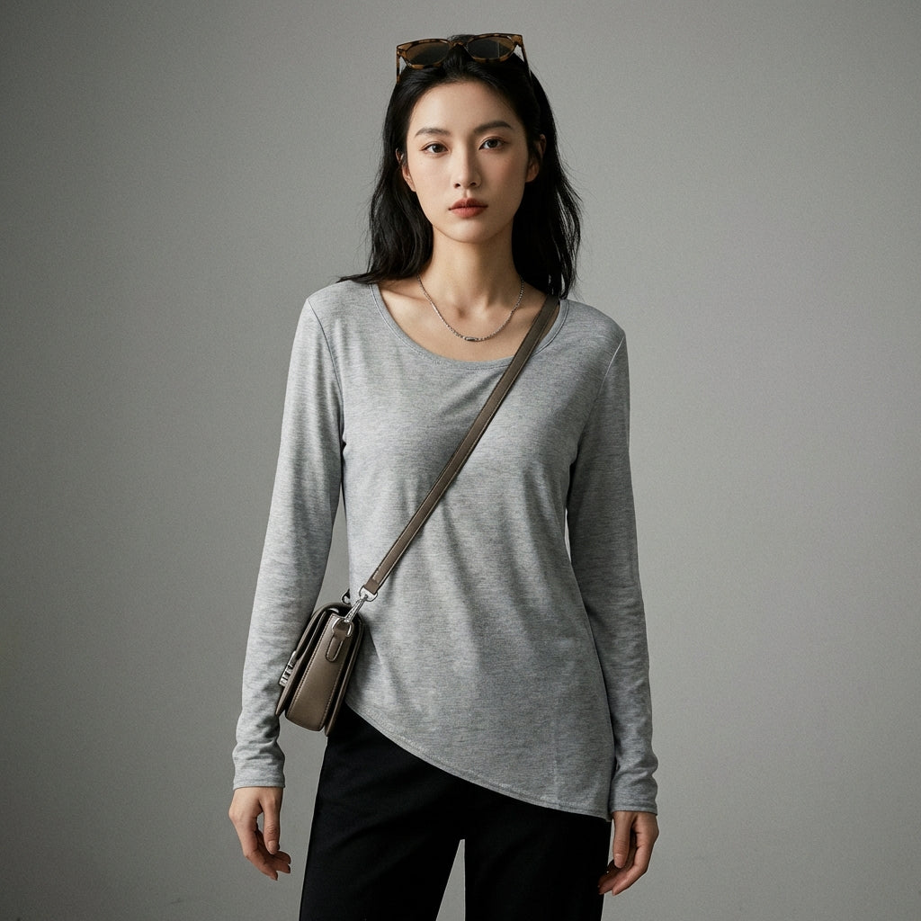 Získejte ležérní a moderní vzhled s naším tričkem s dlouhým rukávem, které má nepravidelný lem a boční rozparky pro nádech originality. Ideální pro městský a pohodlný každodenní styl! ✨