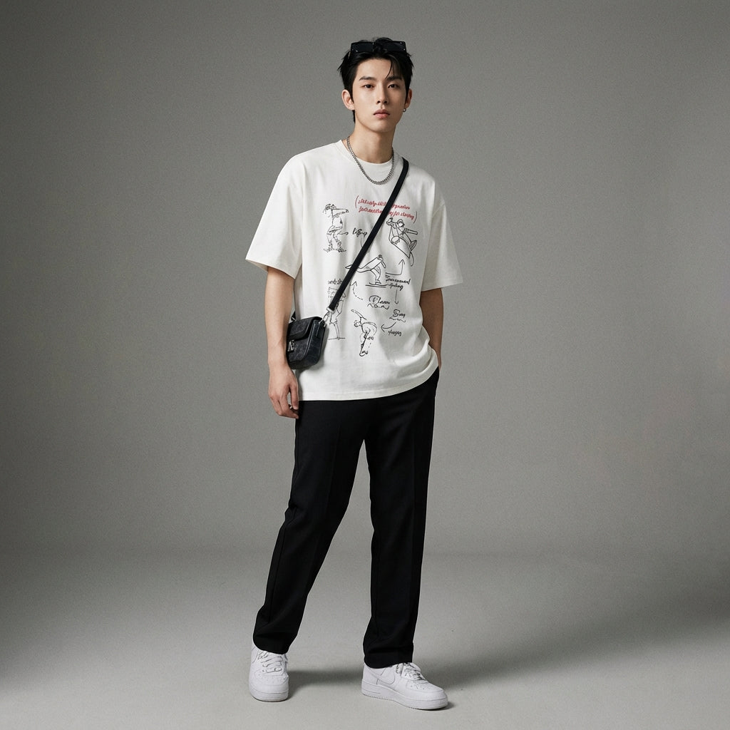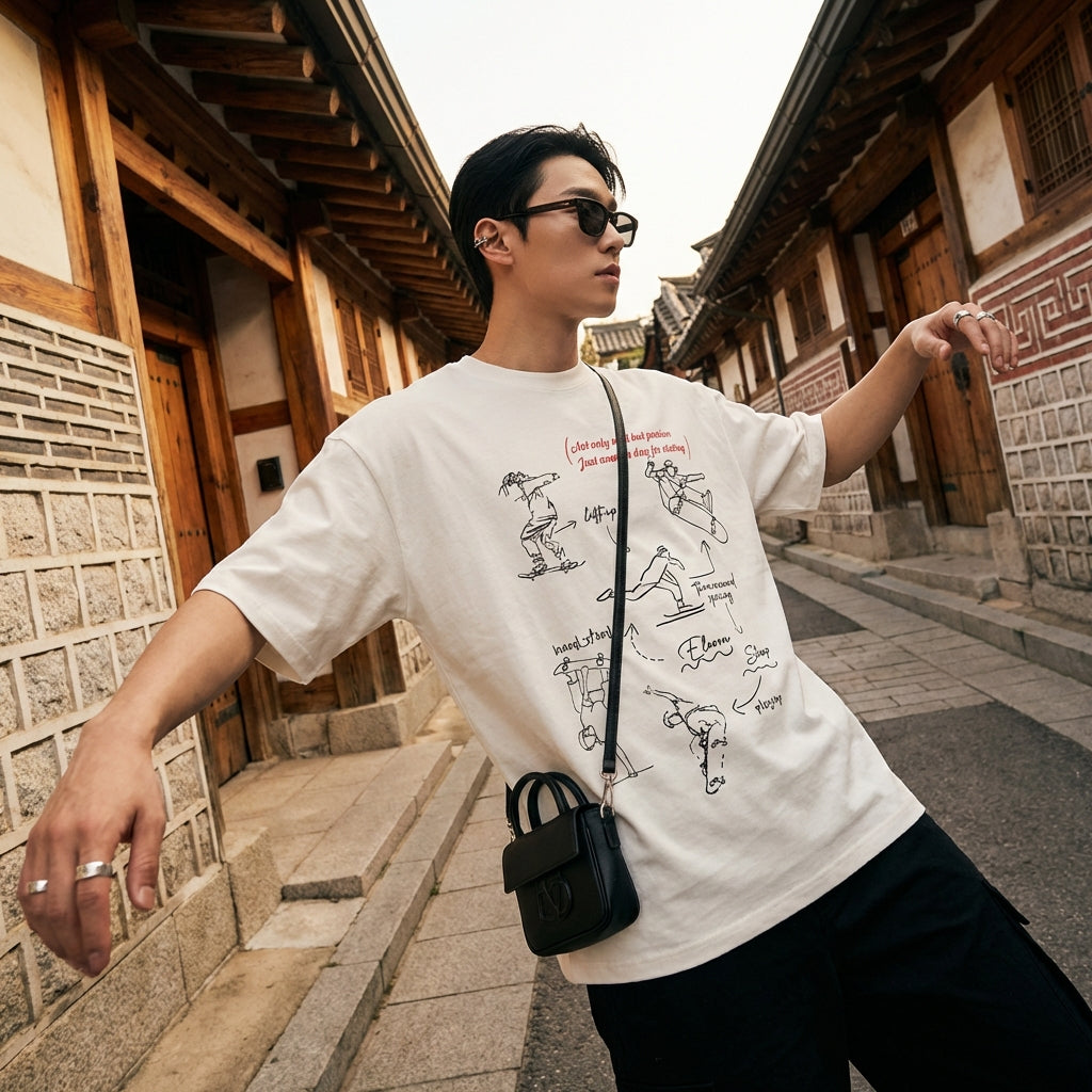 - Styl: Streetwear, Ležérní, K-fashion. Toto tričko ztělesňuje mladistvého a trendy ducha korejské městské módy, ideální pro odvážný a pohodlný vzhled.