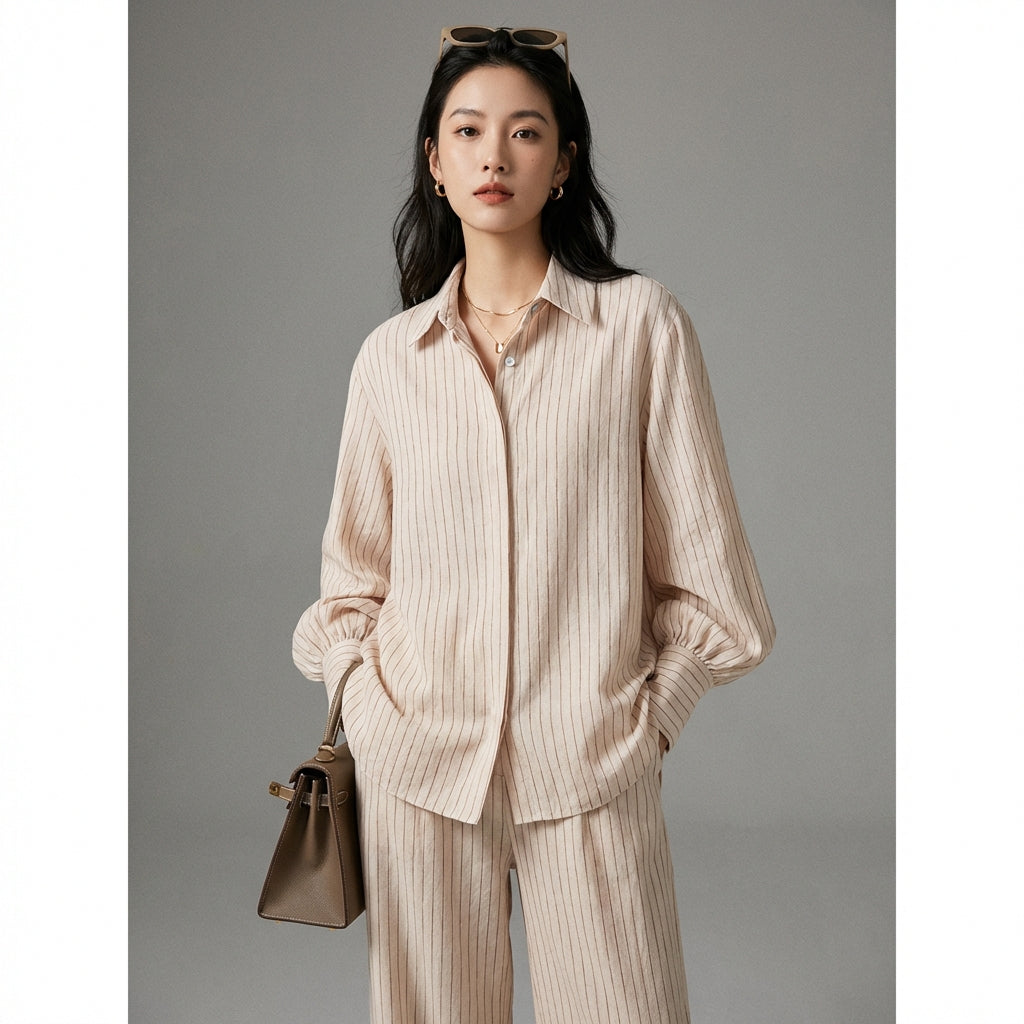 Získejte sofistikovaný a ležérní vzhled s naším geometricky potištěným saténovým kompletem. Skládá se z volné halenky s dlouhými rukávy a palazzo kalhot se širokými nohavicemi, tento komplet kombinuje pohodlí a eleganci pro výrazný městský styl! ✨