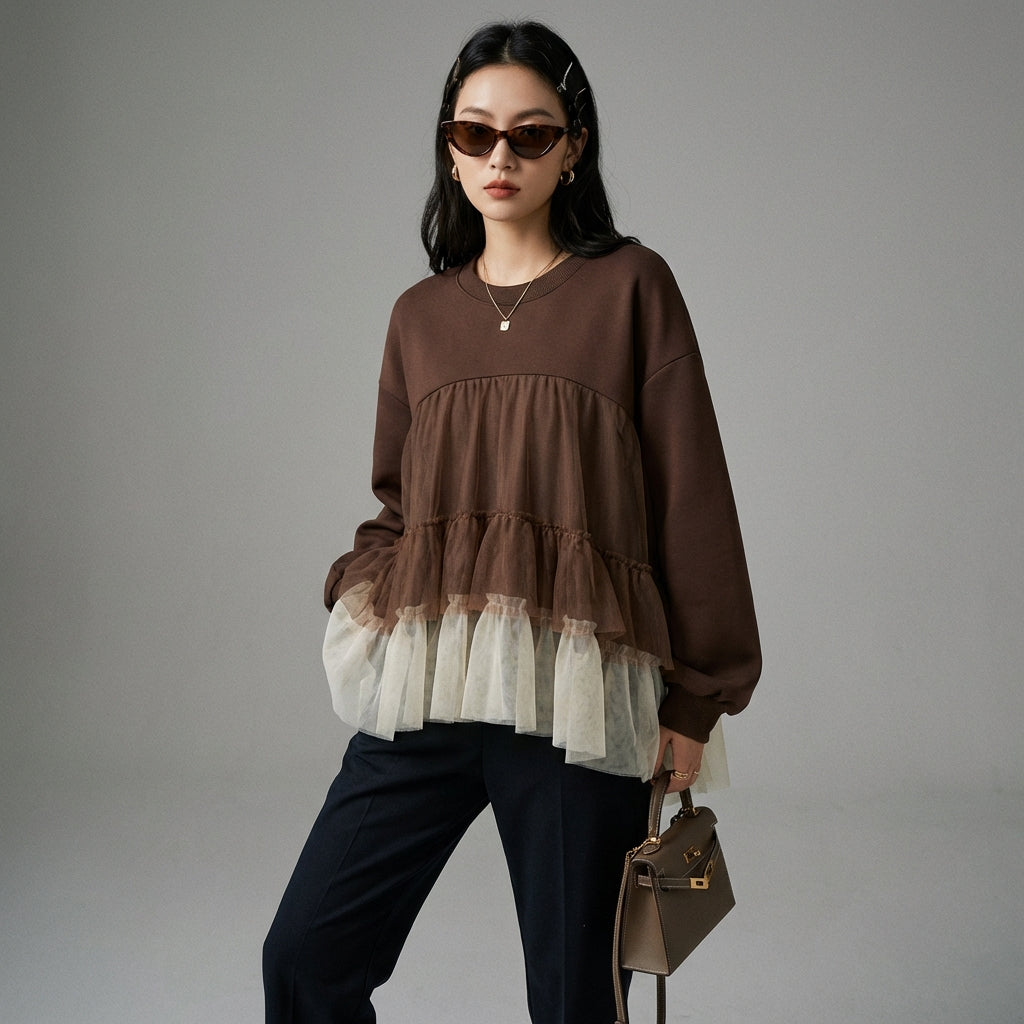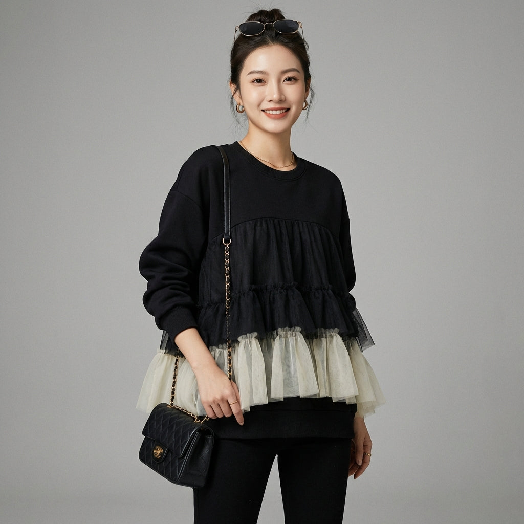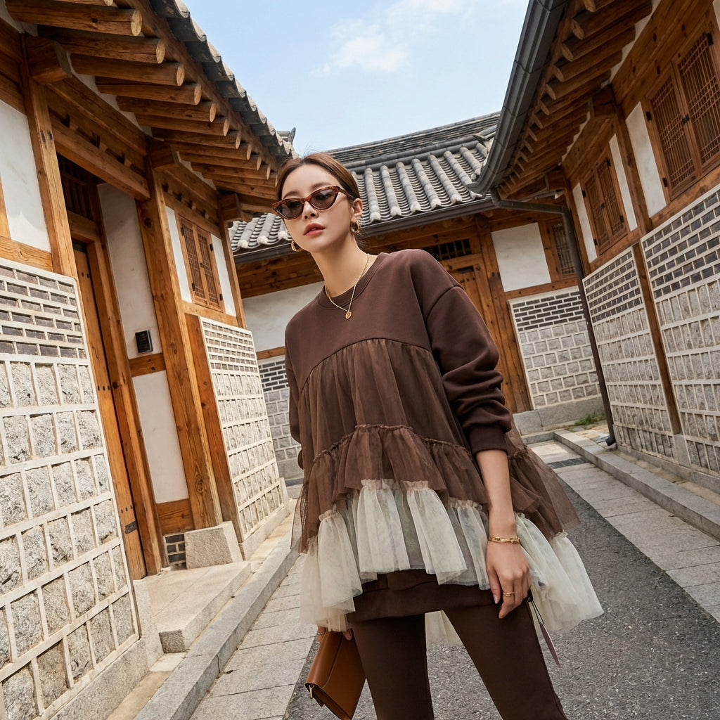 • Styl: Streetwear, K-fashion, Trendy. Tato mikina ztělesňuje ležérního a moderního ducha korejské módy, s volným střihem a plisovanými detaily.