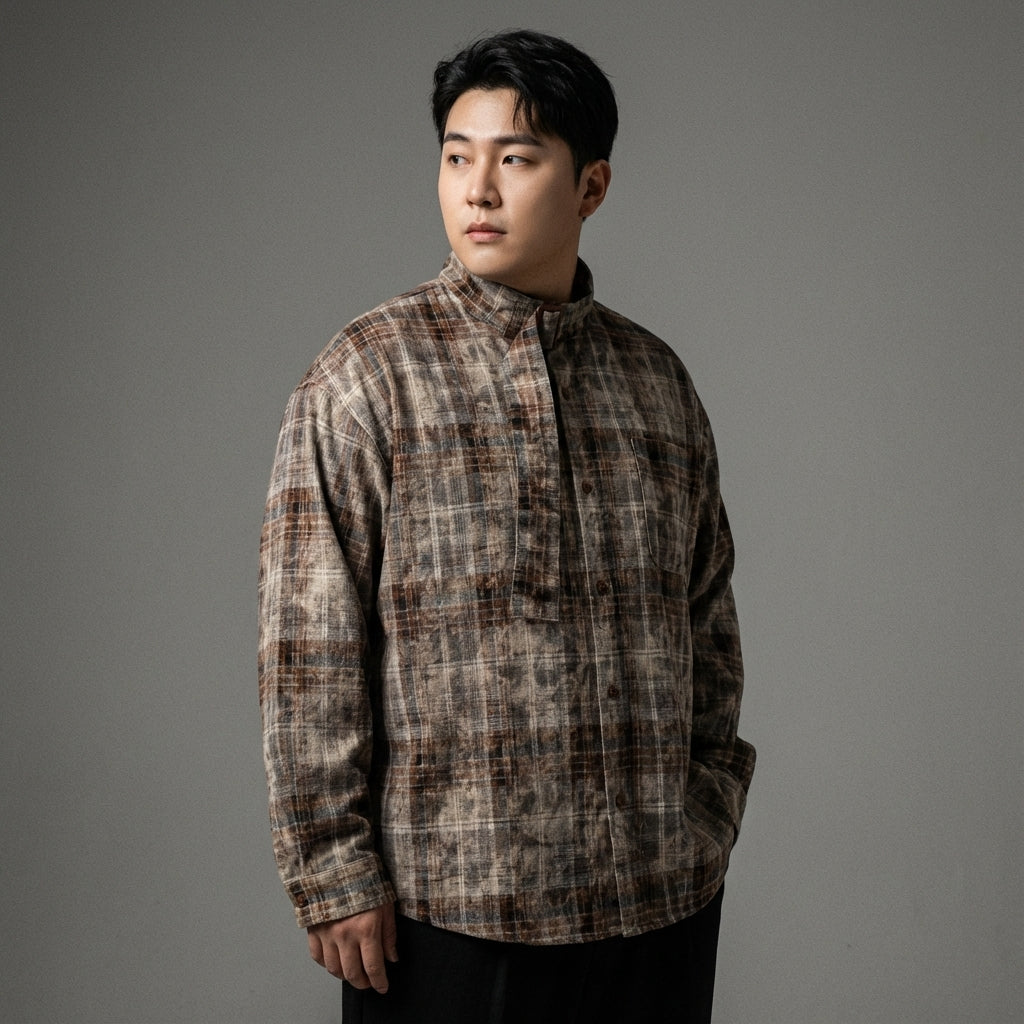 Získejte ležérní a trendy vzhled s naší kostkovanou košilí s tie-dye efektem. Její stojáček a volný střih z ní dělají pohodlný a stylový kousek, ideální pro každou příležitost! 🌟