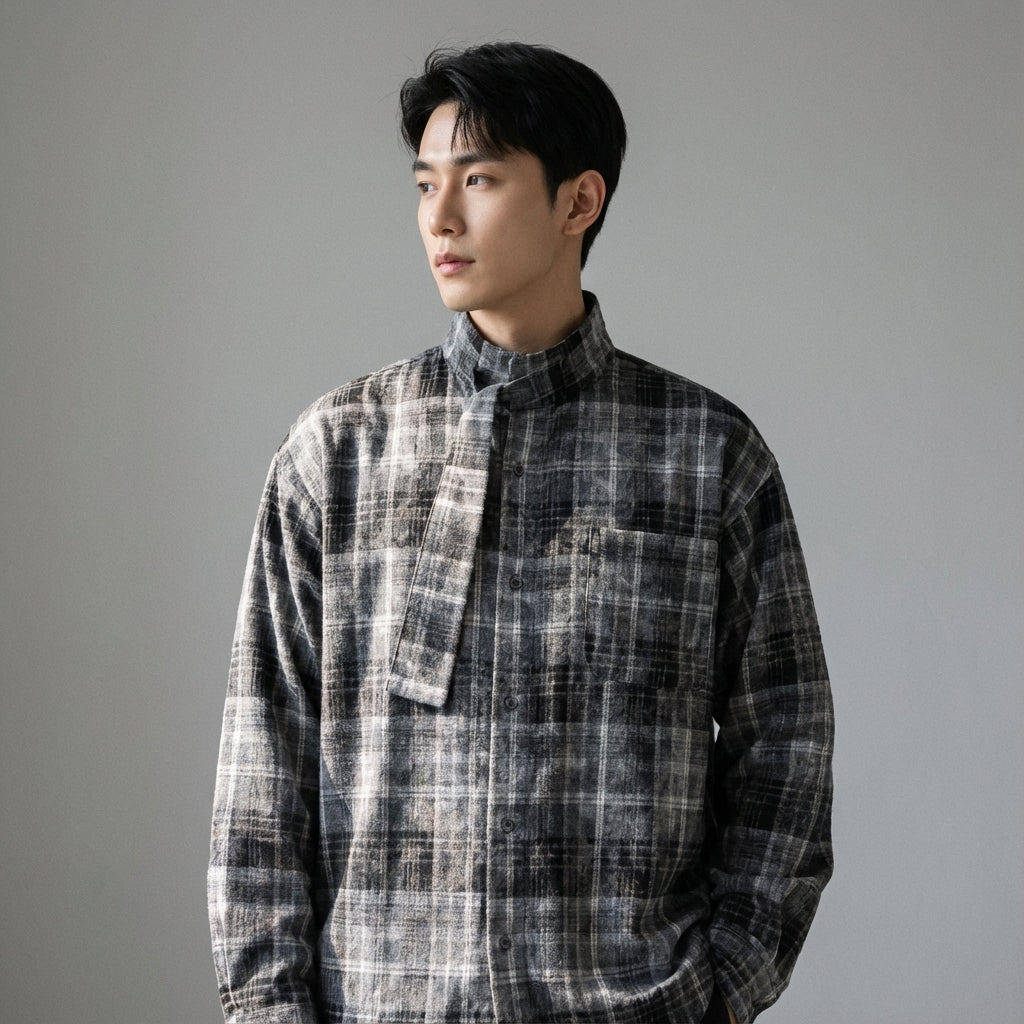 - Styl: Streetwear, Vintage, Ležérní, K-fashion. Tato košile kombinuje estetiku streetwearu s vintage a ležérním nádechem, velmi oblíbeným v korejské módě.