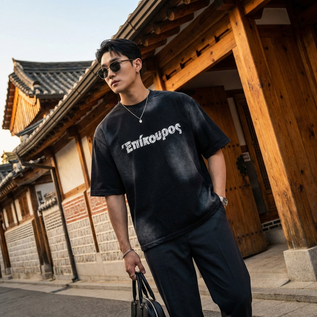 Toto tričko "Washed Vintage" je ideálním kouskem pro vyjádření vaší osobnosti a vášně pro korejskou módu, přičemž zůstanete pohodlní a styloví.