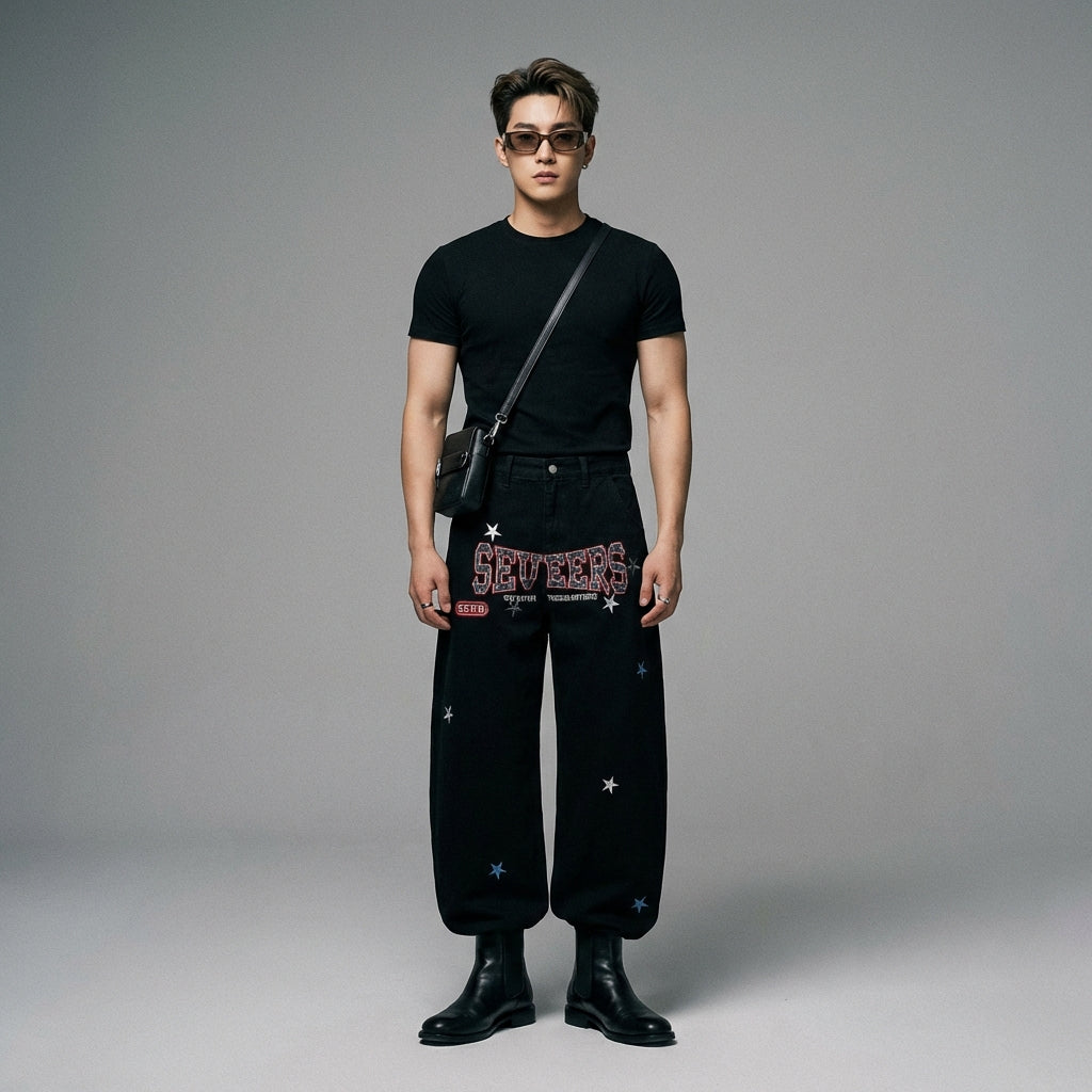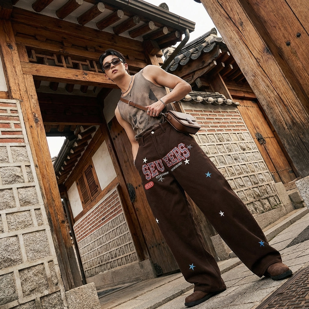- Stil: Streetwear, afslappet, K-fashion. Disse bukser udtrykker ånden fra koreansk urban mode med et strejf af afslappet elegance.