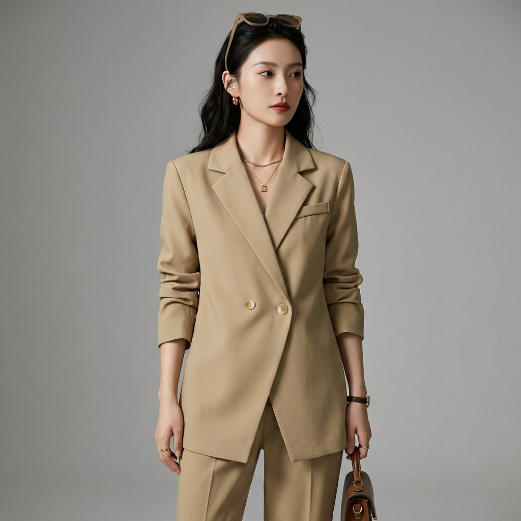 - Stil: Minimalistisk, Chic, Office Lady. Denne blazer inkarnerer moderne koreansk mode med en ren æstetik, ideel til en professionel eller elegant stil.