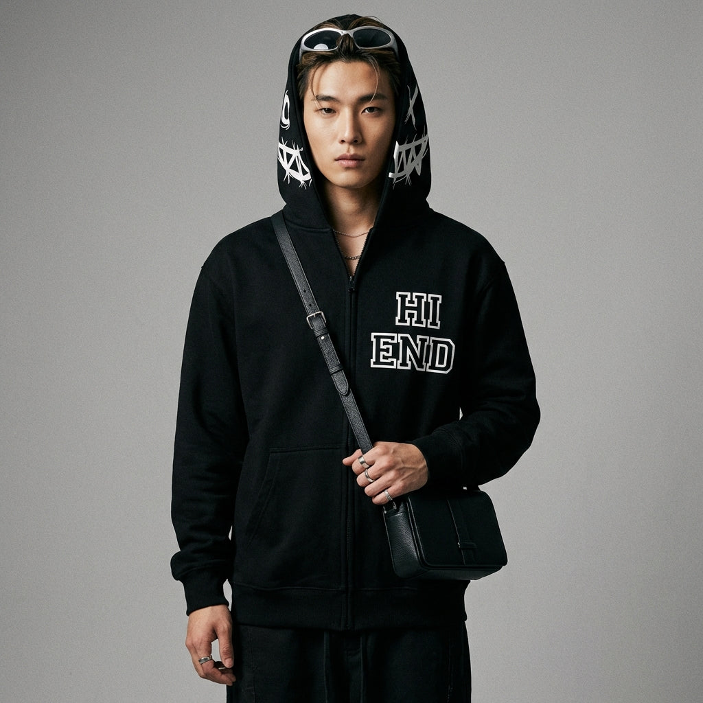 Få et afslappet og stilfuldt look med vores lynlåssweatshirt med hætte, prydet med trendy grafiske mønstre. Perfekt til at tilføje et moderne touch til dit hverdagsoutfit, denne sweatshirt kombinerer komfort og originalitet! ✨