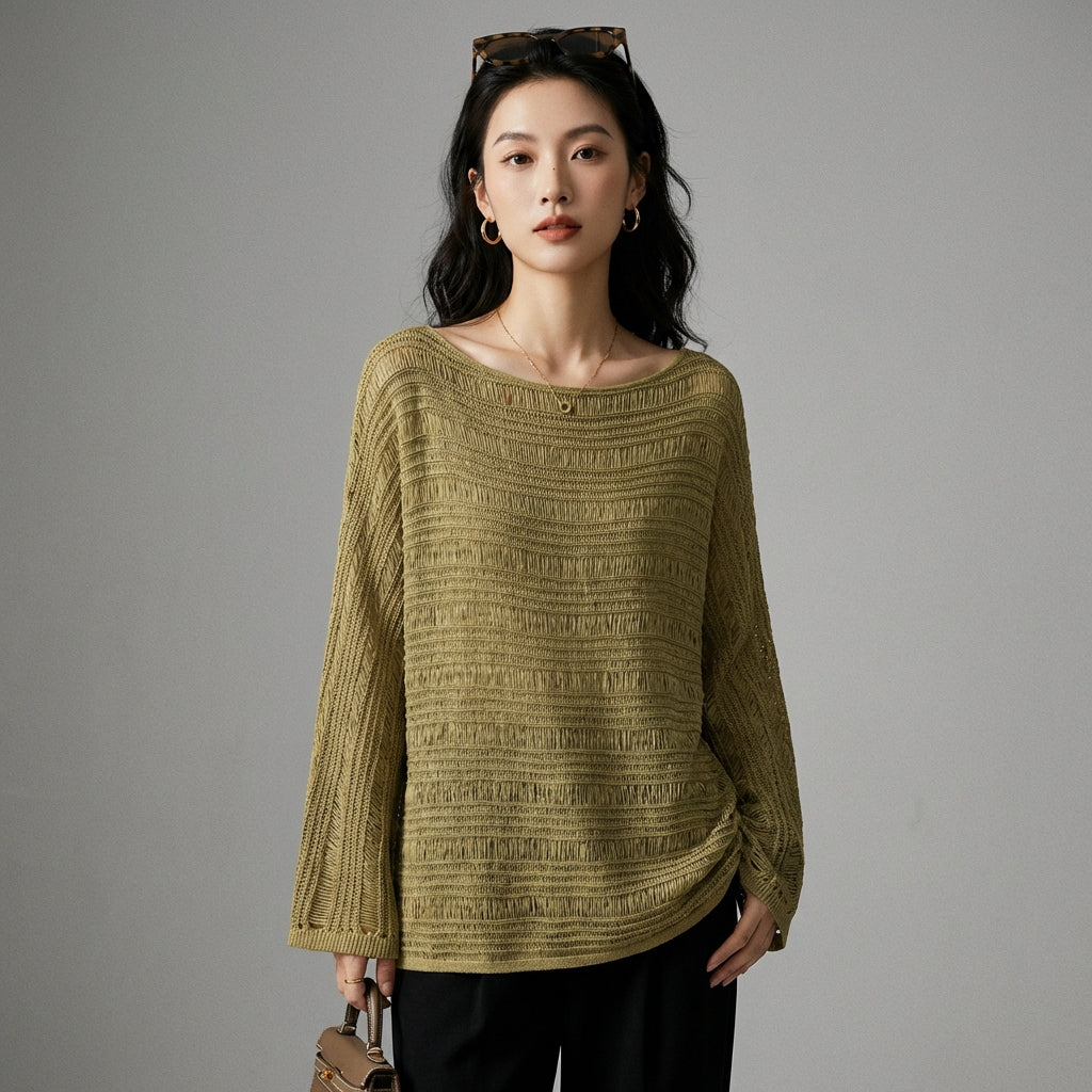 Anlæg en afslappet og trendy stil med vores strikkede sweater med rund hals og oversized pasform. Dens olivengrønne nuance giver et moderne touch og passer nemt til alle dine outfits. Perfekt til et behageligt og stilfuldt look! 🌿
