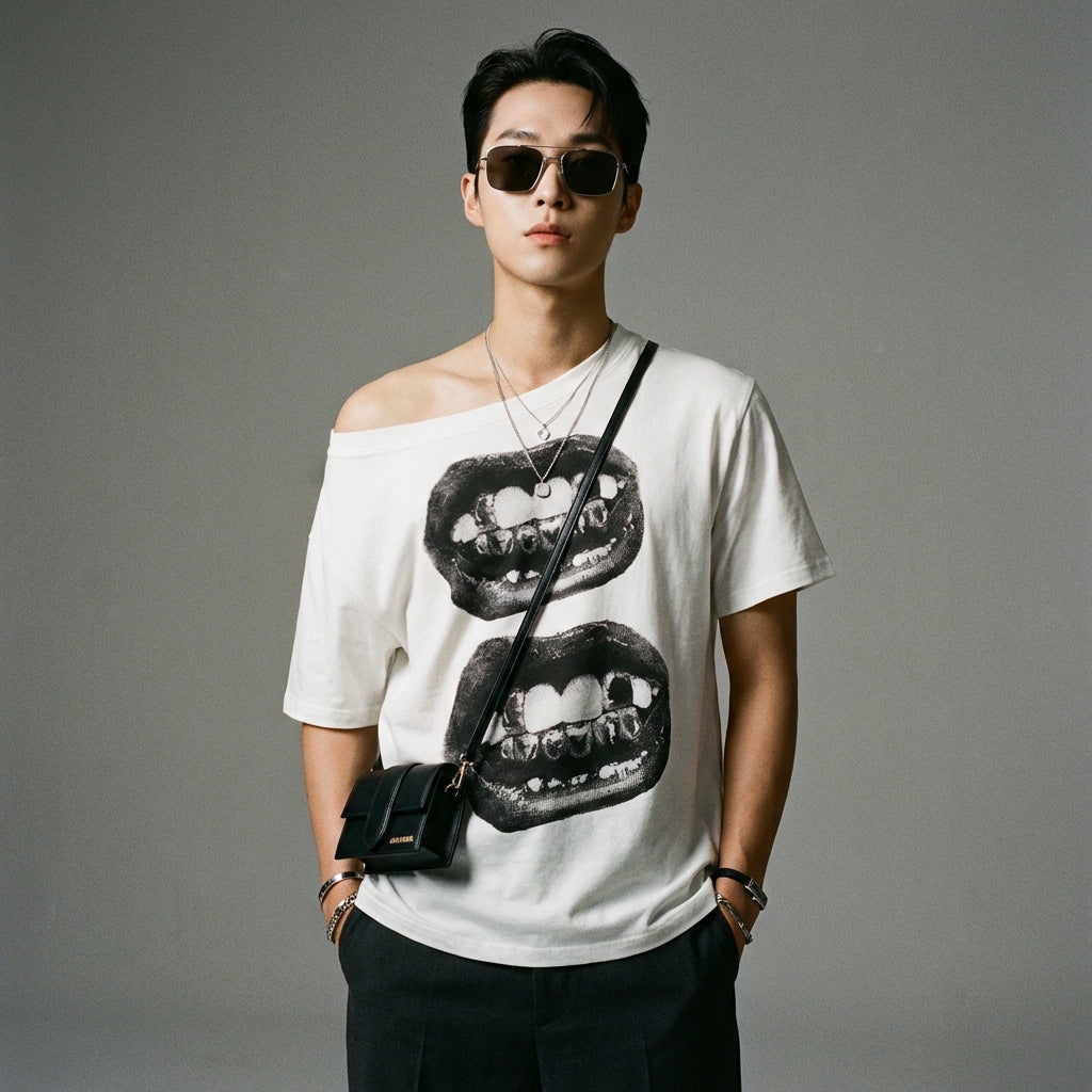 - Stil: Streetwear, Hip-hop, K-fashion. Denne T-shirt udtrykker ånden i koreansk urban mode med et strejf af originalitet.