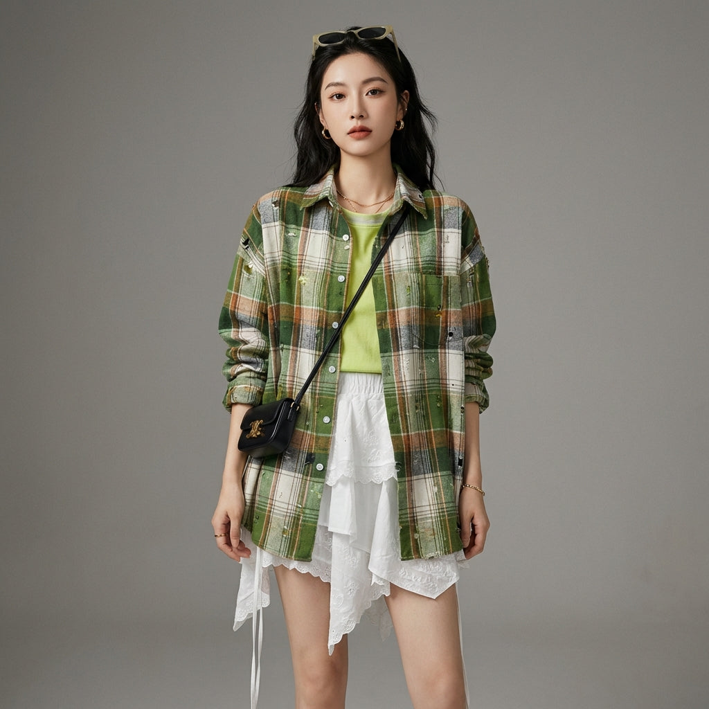 Få et afslappet og trendy look med vores ternede oversize jakke. Ideel til at lægge over dit tøj, den tilføjer et strejf af urban og afslappet stil til din garderobe. Dens løse design og unikke finish gør den til et must-have til alle årstider! ✨