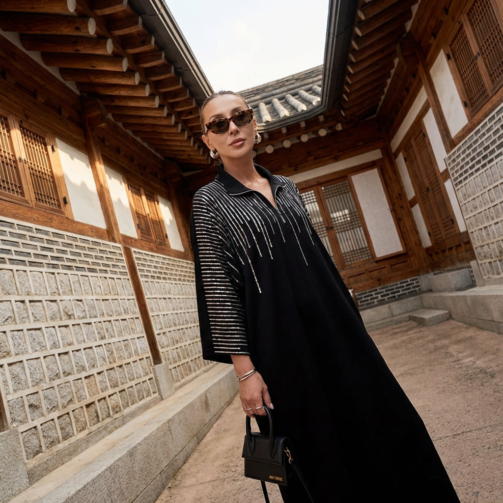 • Στυλ: Κορεάτικη μόδα, Streetwear, Casual, Μοντέρνο. Αυτό το φόρεμα ενσαρκώνει το μοντέρνο και χαλαρό πνεύμα της K-fashion, ιδανικό για ένα αστικό και στυλάτο look.