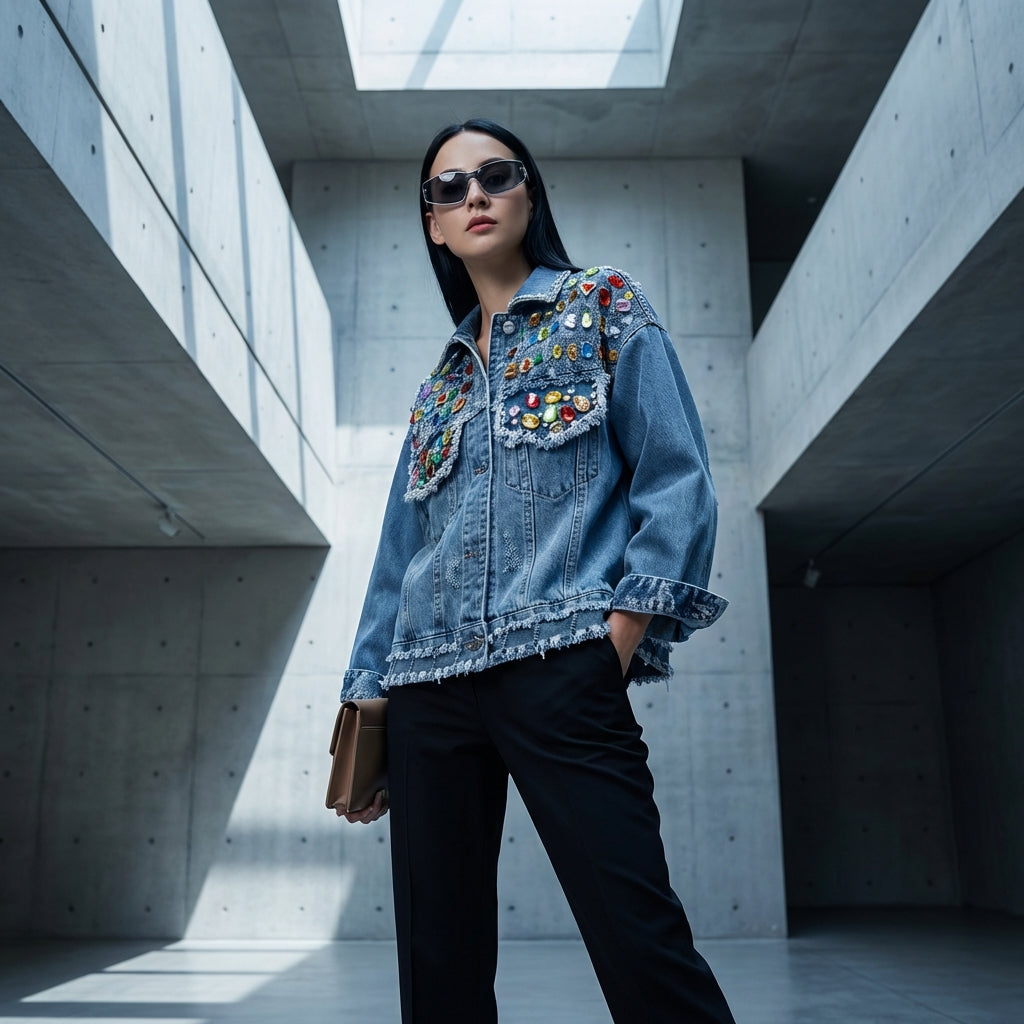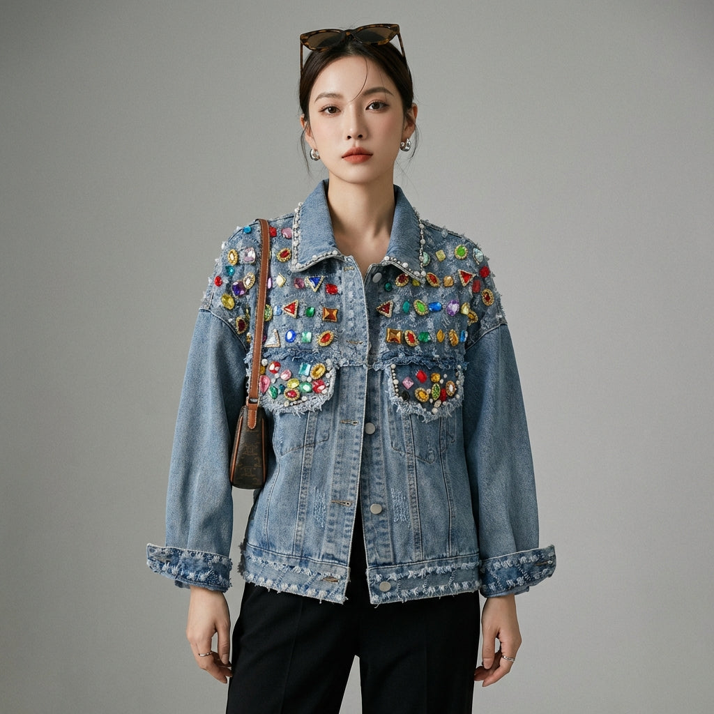 Με τις προσεγμένες λεπτομέρειες του, όπως ο γιακάς polo και οι λειτουργικές τσέπες, αυτό το τζιν μπουφάν θα γίνει γρήγορα ένα απαραίτητο κομμάτι της γκαρνταρόμπας σας. Συνδυάστε το με ένα παντελόνι cargo ή μια πλισέ φούστα για ένα έντονο στυλ K-fashion.