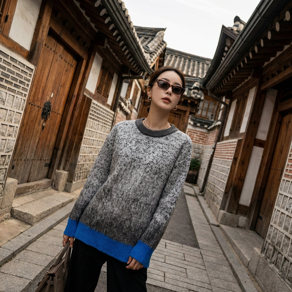 Αυτό το ντεγκραντέ πουλόβερ είναι το ιδανικό κομμάτι για να εκφράσετε την προσωπικότητά σας και να προσθέσετε μια πινελιά κορεάτικου στυλ στην γκαρνταρόμπα σας.