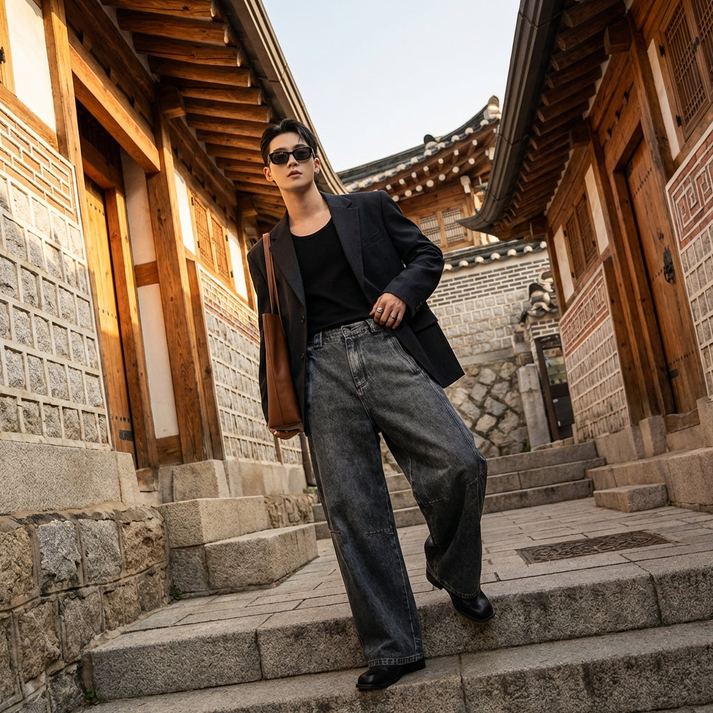 - Στυλ: Streetwear, K-fashion, Ρετρό, Casual. Αυτό το τζιν εμπνέεται από τις τρέχουσες τάσεις της κορεατικής μόδας, με μια ρετρό ιαπωνική πινελιά για ένα έντονο στυλ.