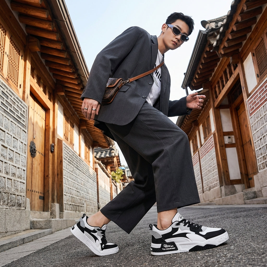 - Στυλ: Streetwear, K-fashion, Αθλητικό, Μοντέρνο. Αυτά τα παπούτσια είναι η ενσάρκωση του κορεατικού αστικού στυλ, με μια αθλητική πινελιά για μια δυναμική εμφάνιση.