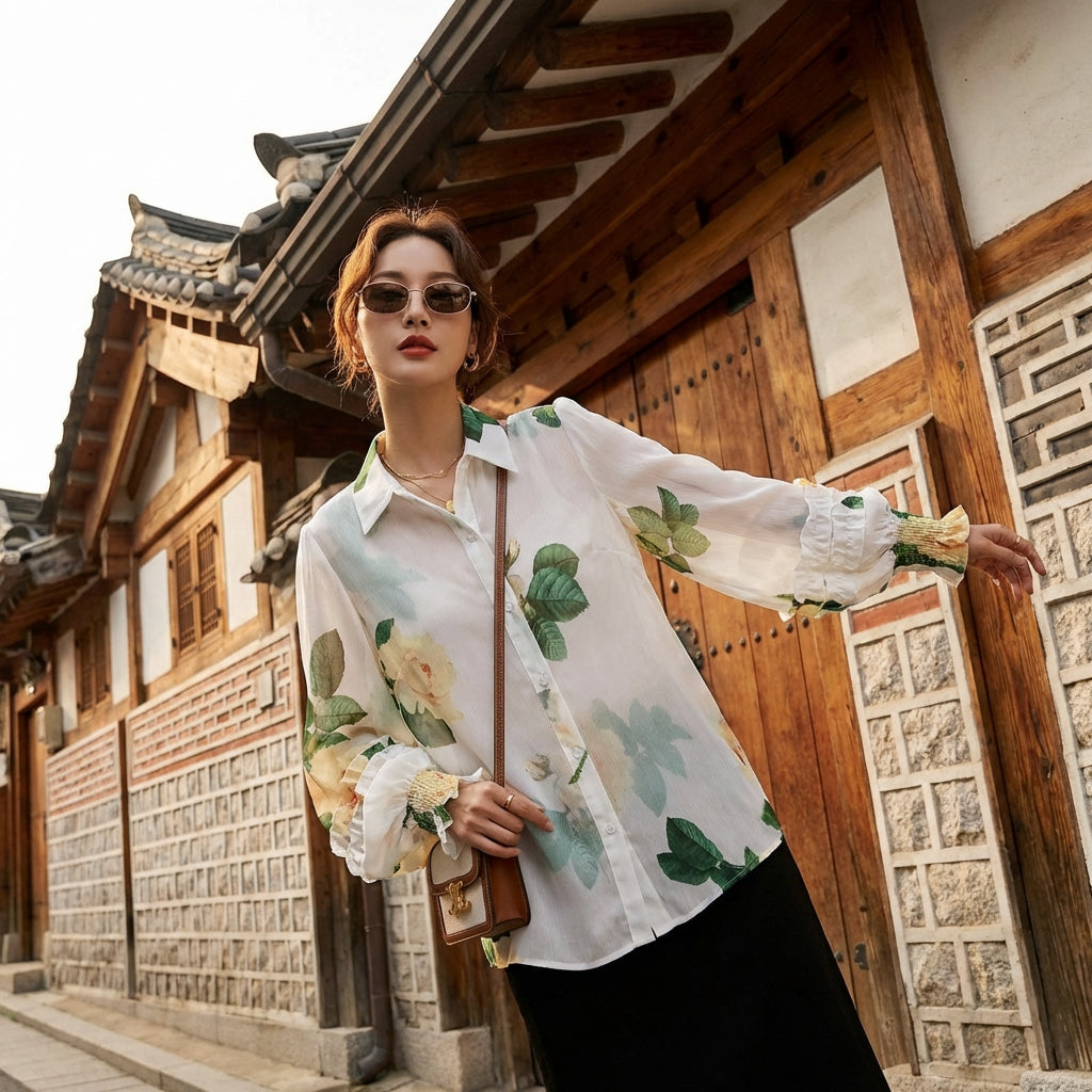 Αυτό το εμπριμέ πουκάμισο είναι ένα must-have για όσες αναζητούν να συνδυάσουν άνεση και στυλ, ενώ ταυτόχρονα επιβεβαιώνουν μια μοναδική προσωπικότητα εμπνευσμένη από την κορεάτικη μόδα.