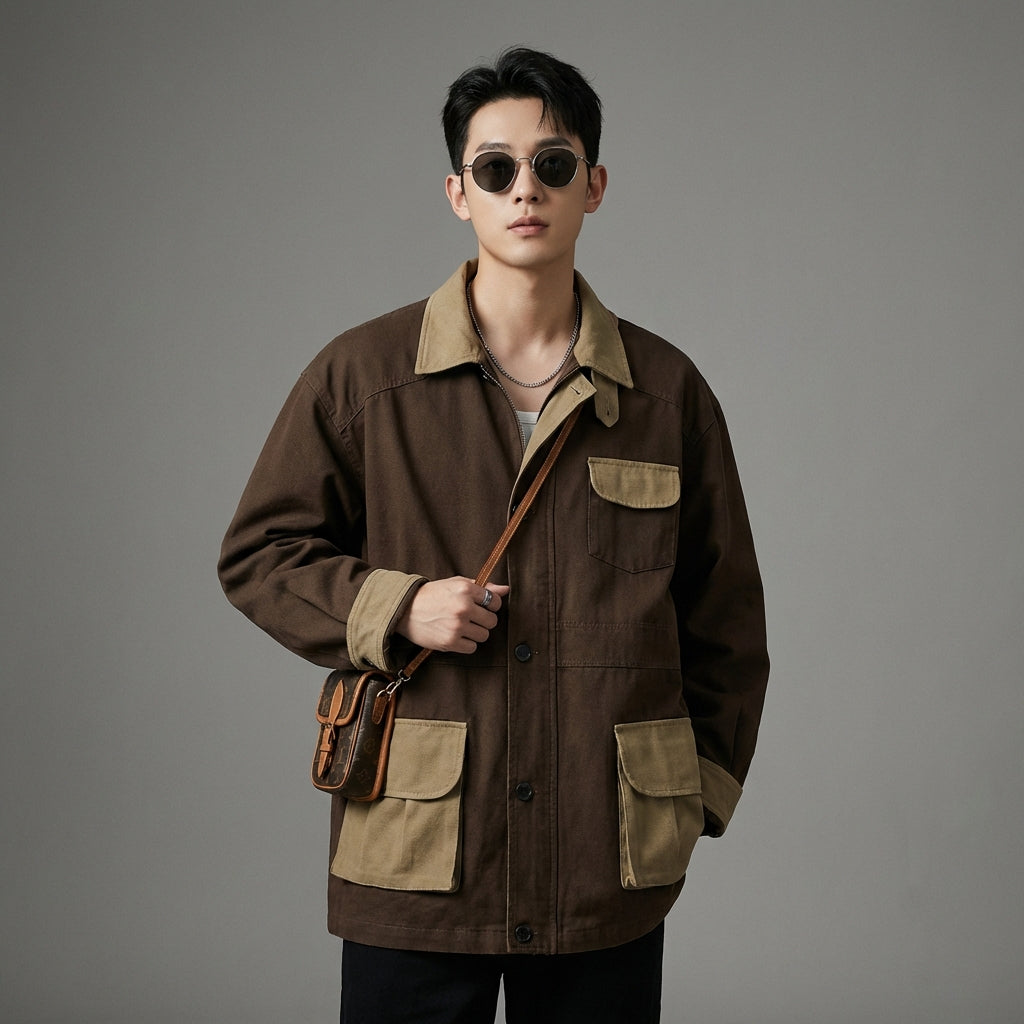 Υιοθετήστε ένα χαλαρό και κομψό look με το ανδρικό μας μεσοφόρι εργασίας. Με πολλές τσέπες και γιακά, αυτό το μπουφάν προσφέρει μια φαρδιά και άνετη εφαρμογή, ιδανική για όλες τις καθημερινές σας δραστηριότητες. Ο σχεδιασμός του με χρωματικές αντιθέσεις προσθέτει μια μοντέρνα και τολμηρή πινελιά στην γκαρνταρόμπα σας! 🍂