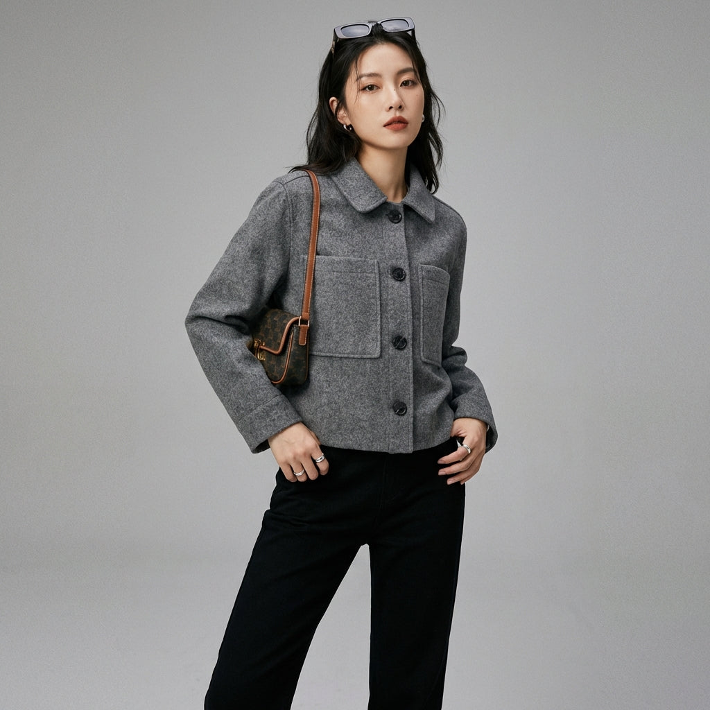 Veste oversize décontractée grise - Koreanxwear