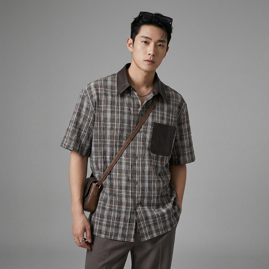 Embrace a casual and stylish look with this short-sleeved shirt, perfect for summer. Its plaid pattern and loose fit make it an essential for urban and comfortable style! ☀️
