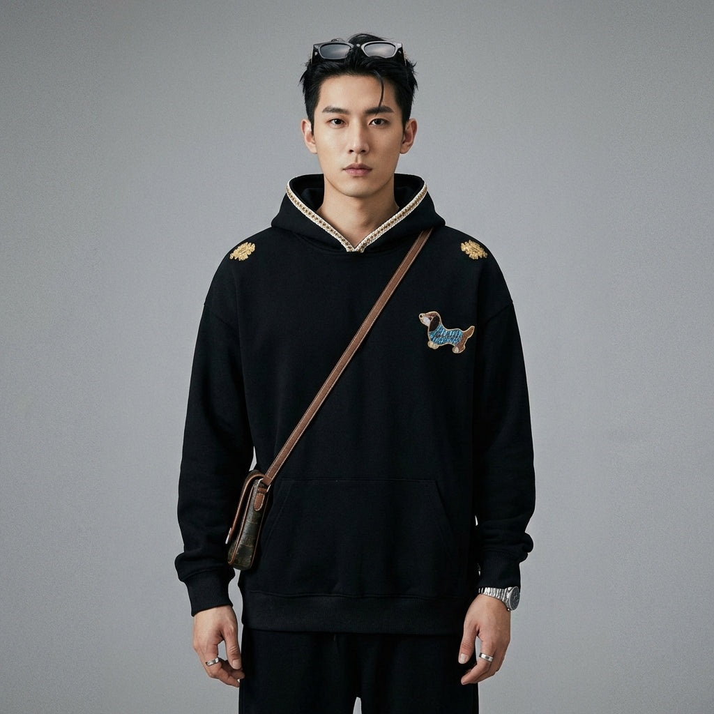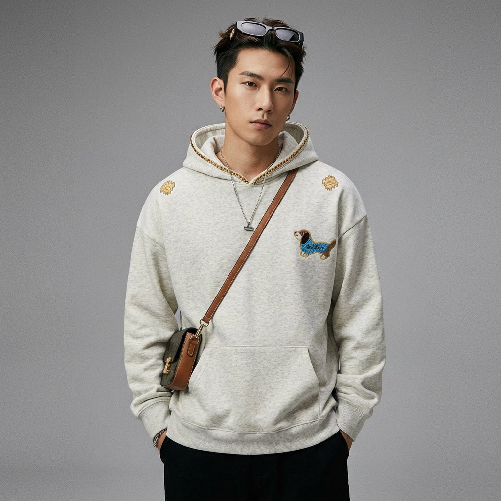 Embrace a casual and stylish look with our hoodie embroidered with a retro dog motif. Perfect for adding a touch of originality to your everyday outfits, this hooded sweatshirt combines comfort and trend for an assertive streetwear style! 🐾
