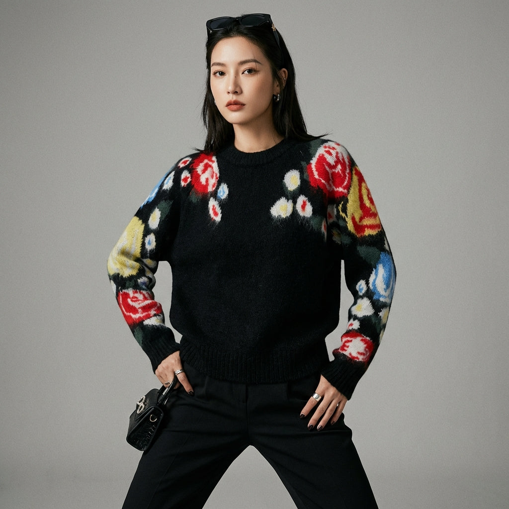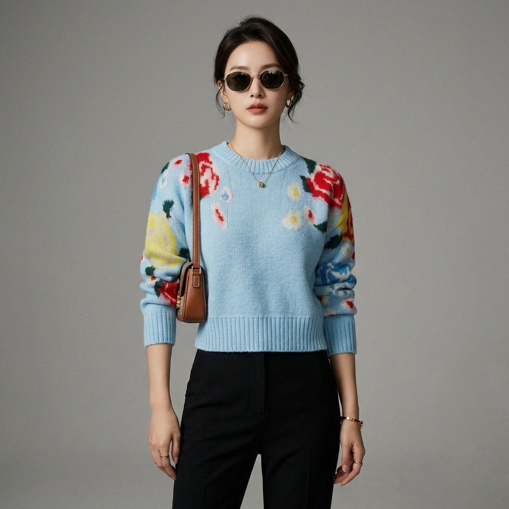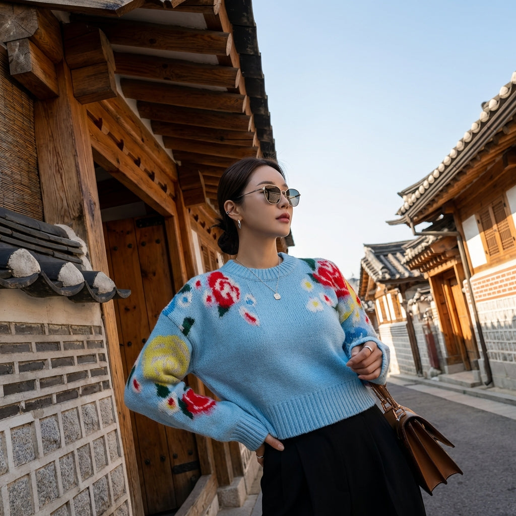 This jacquard sweater is the perfect addition to your wardrobe for a casual yet chic style, inspired by the latest K-fashion trends.
