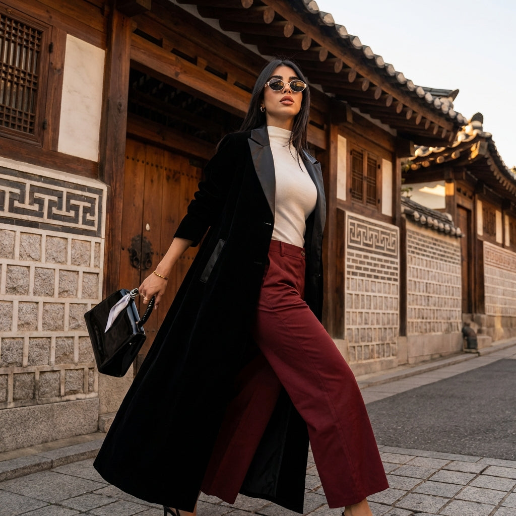 • Style: Korean fashion, Streetwear, Casual chic. This trench coat embodies urban elegance and K-fashion trends, perfect for a bold look.