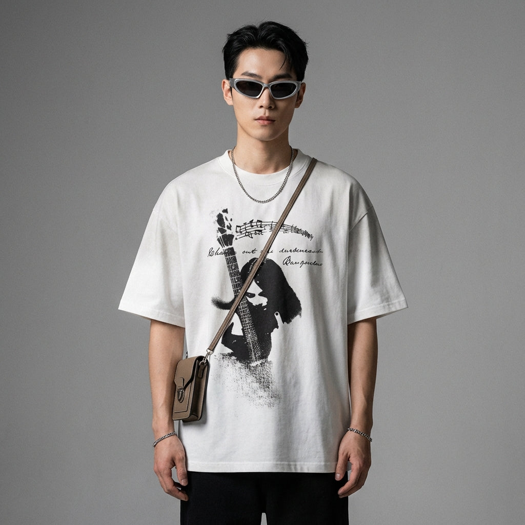 Assert your style with our short-sleeved printed t-shirt, an essential for a casual and trendy look. Its bold rock motif and loose fit guarantee comfort and originality. Ideal for all casual occasions! 🎸
