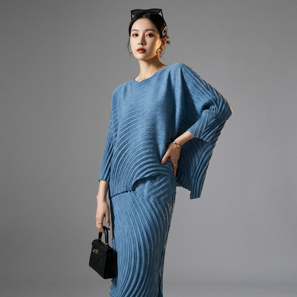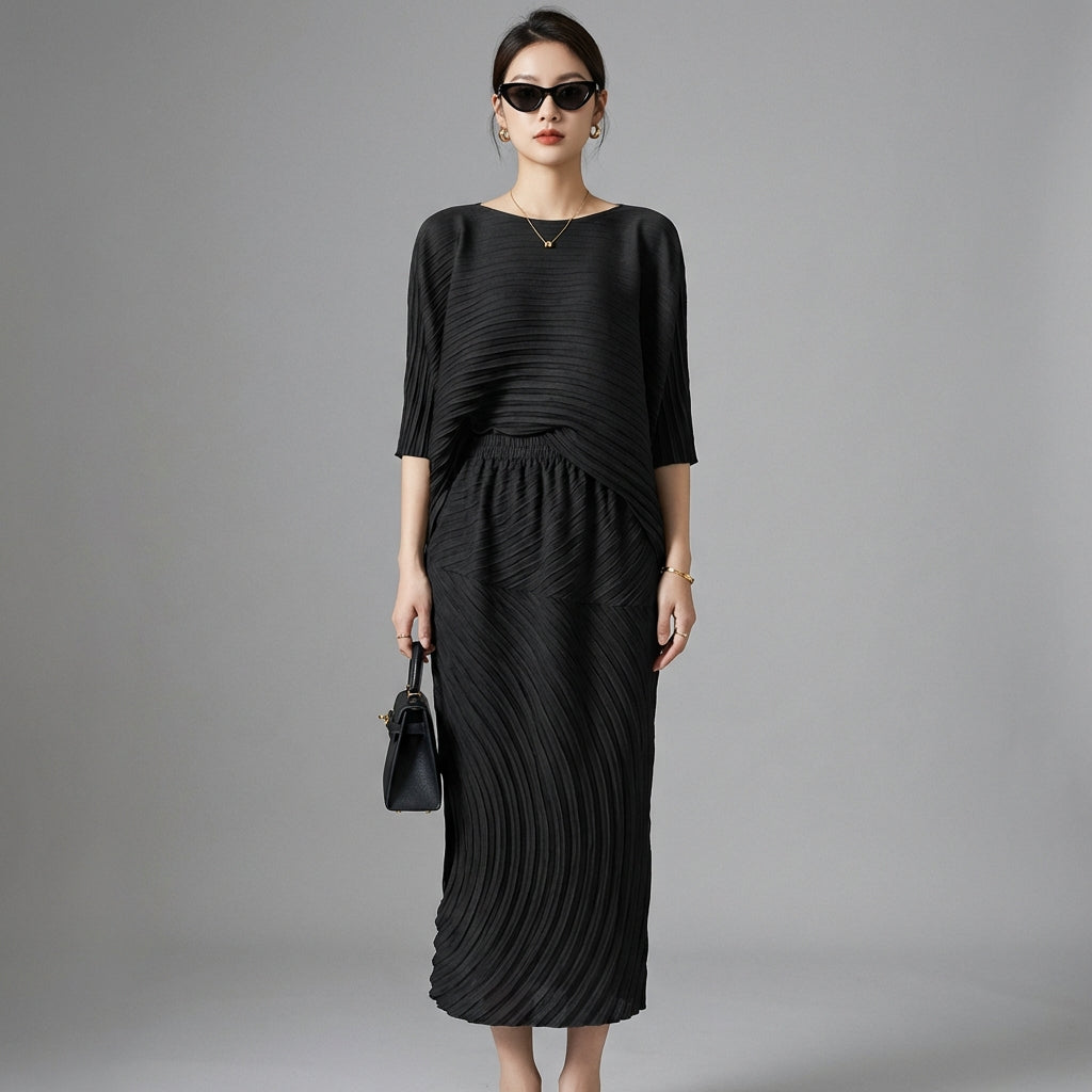 Ensemble plissé deux pièces femme - Haut irrégulier et jupe taille haute - K-fashion
