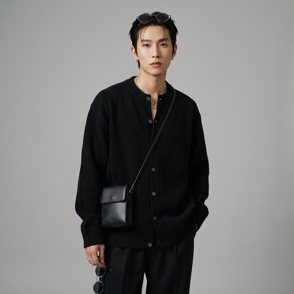 - Style: Streetwear, Minimalist, K-fashion. This cardigan embodies the discreet elegance and casual trend of Korean fashion, perfect for an urban and modern look.